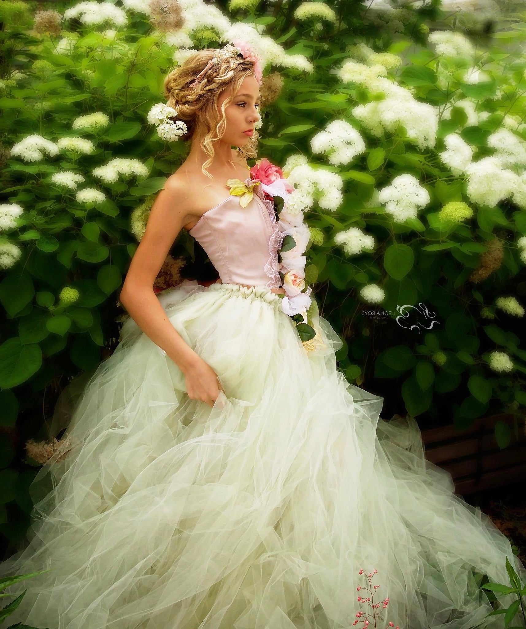 This hand dyed wedding skirt in shades of green radiates amazing free-spirited energy. This gorgeous tulle skirt and Organza Corset will be great for the bride, who loves to feel unique.
