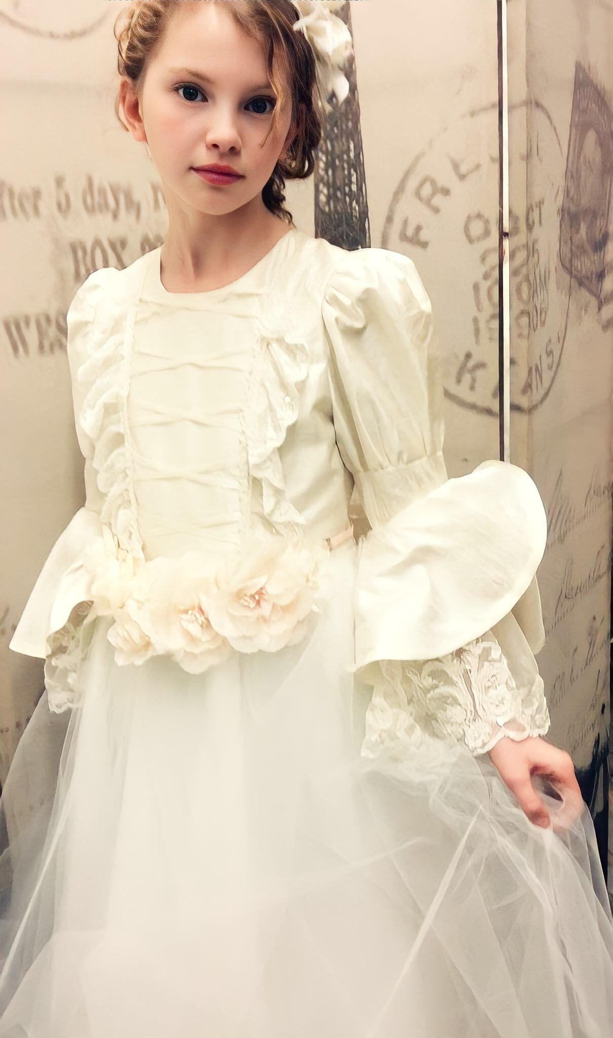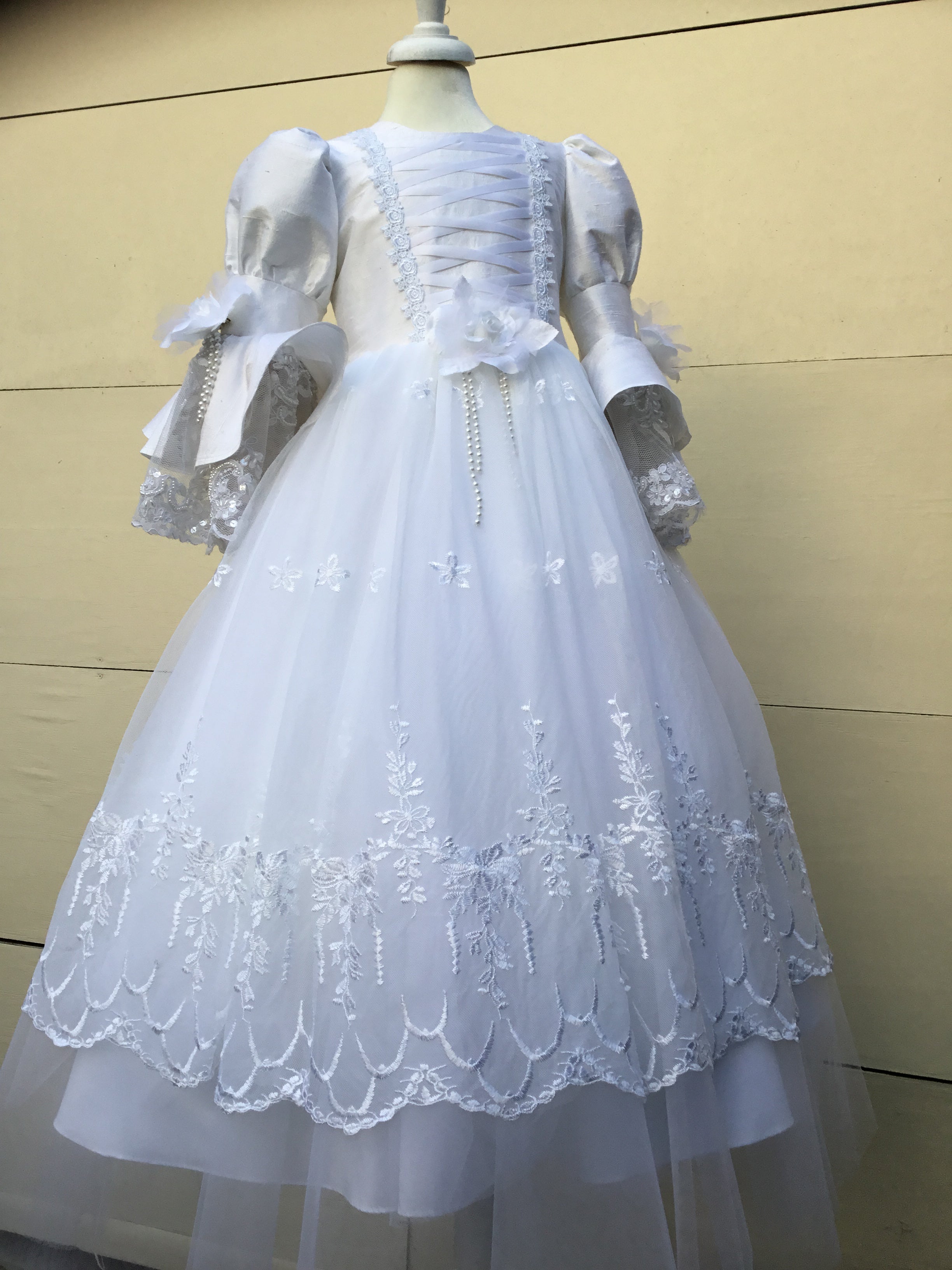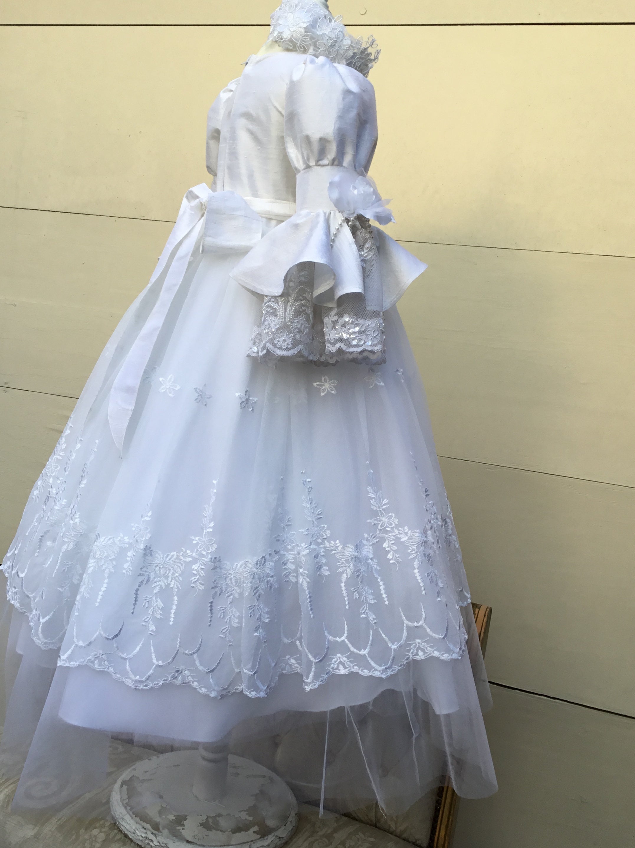 First Communion Silk Dress - Victorian inspired Flower Girl Dress