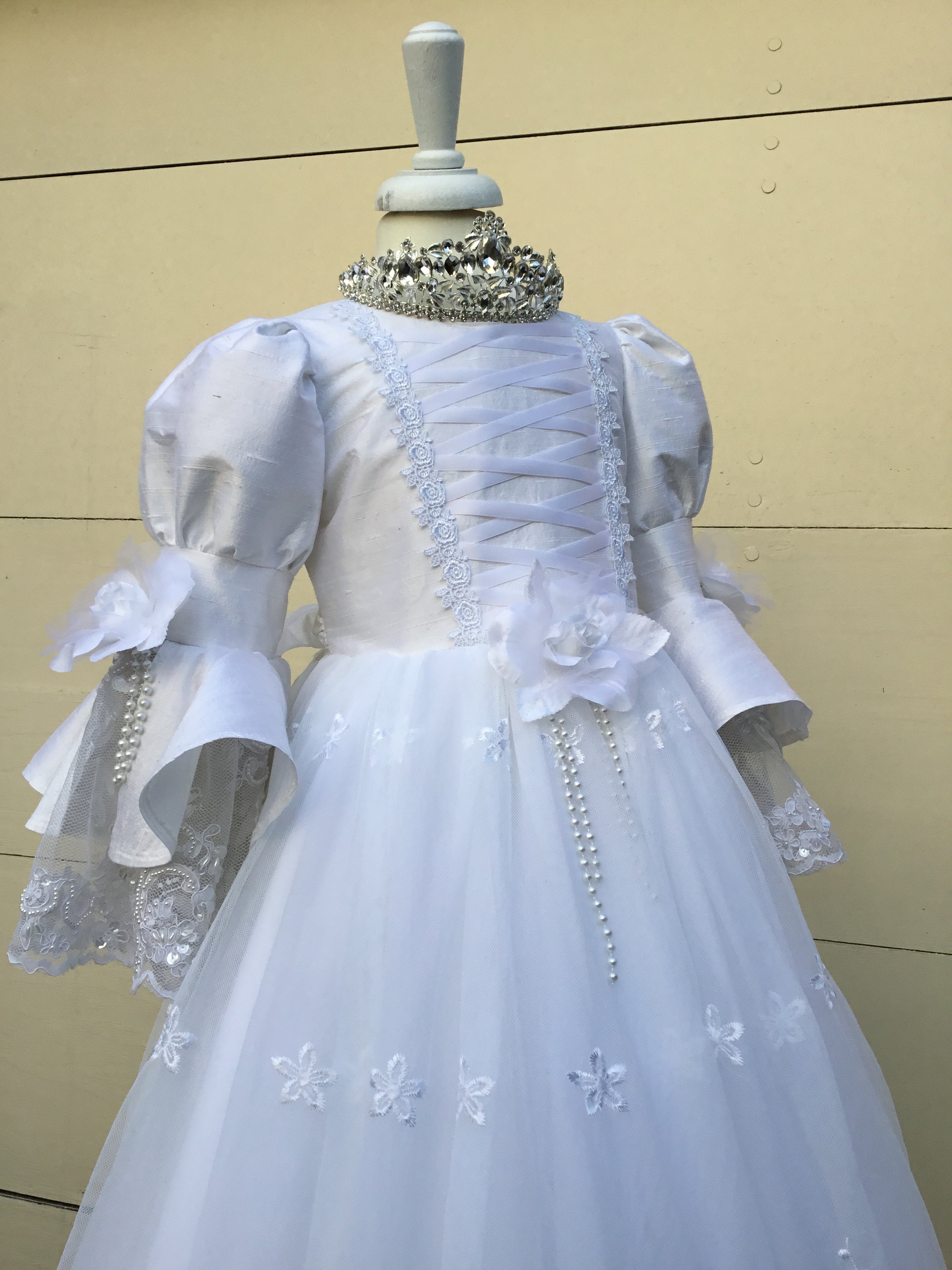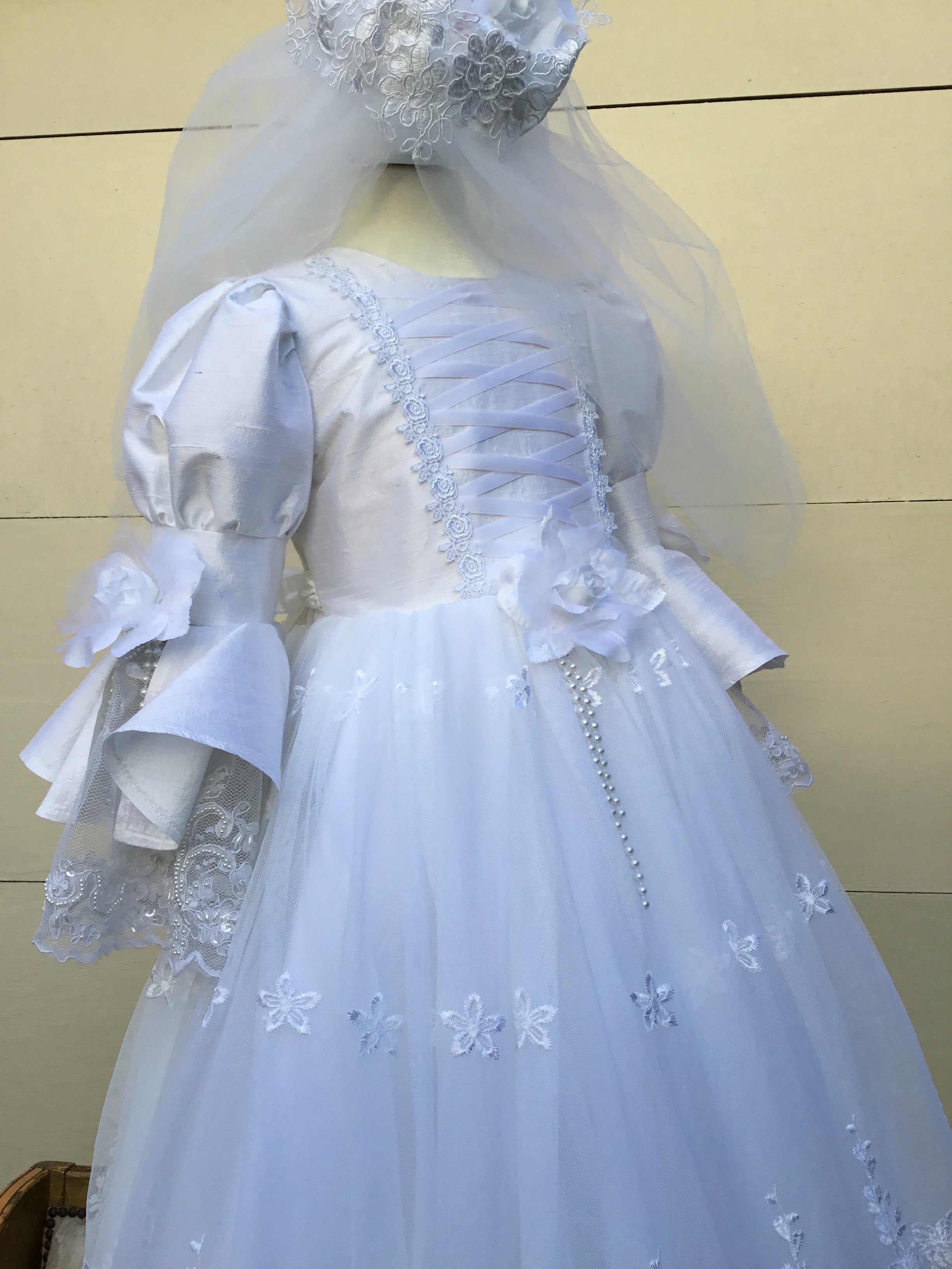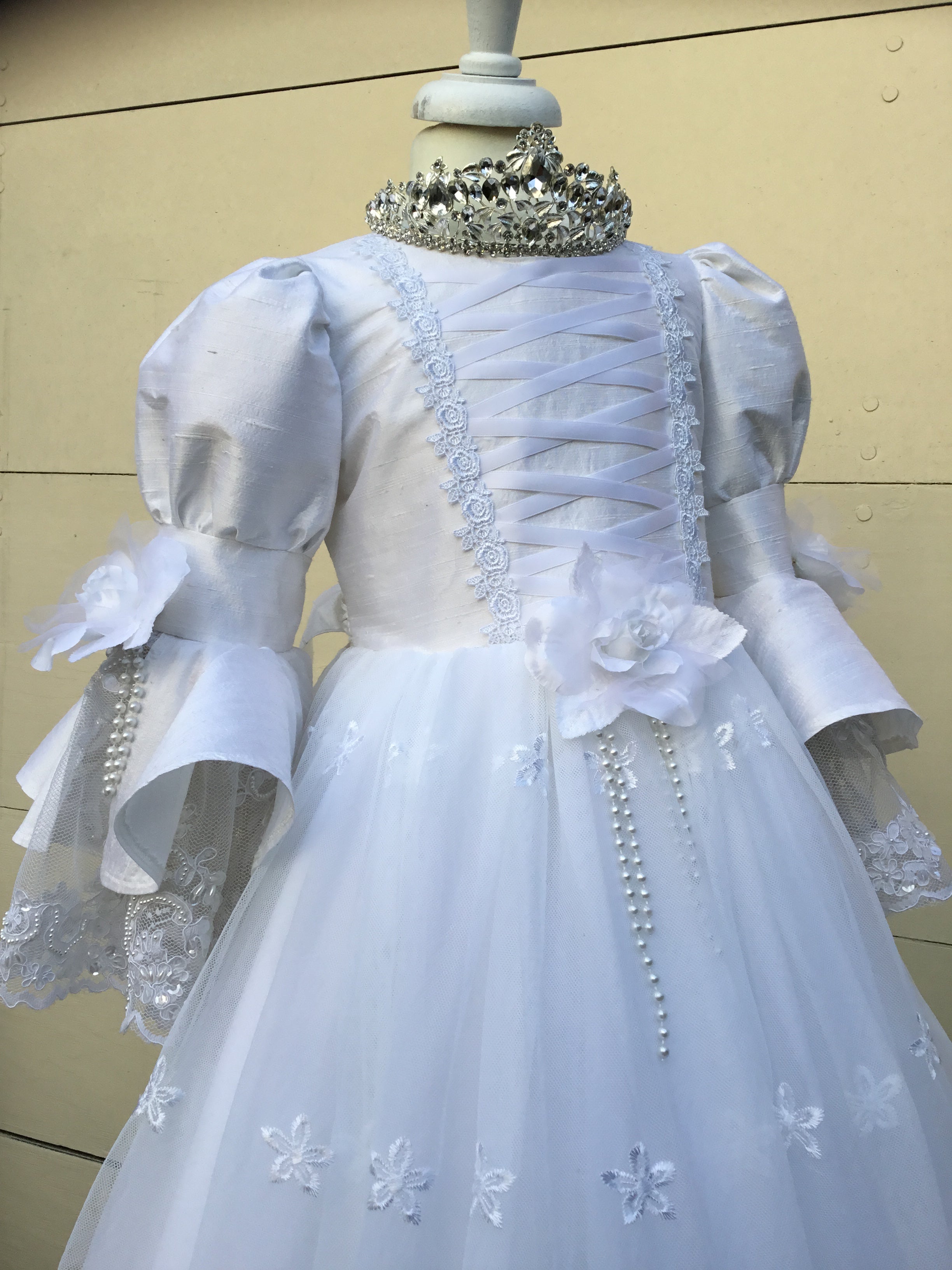First Communion Silk Dress - Victorian inspired Flower Girl Dress