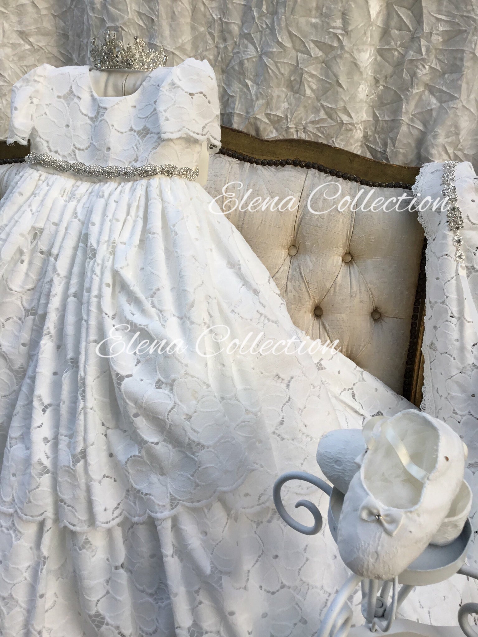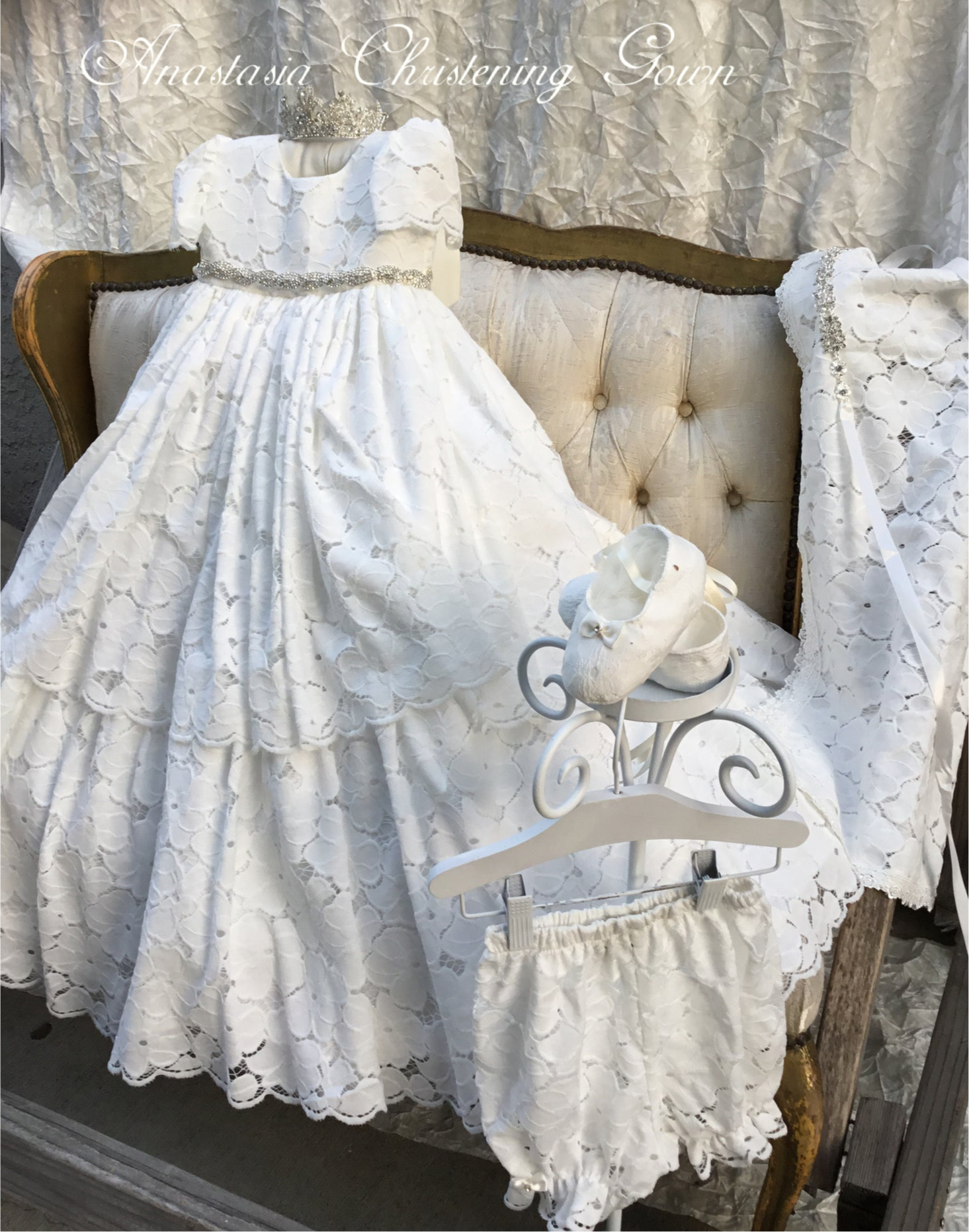 Complete the christening look with matching heirloom accessories: