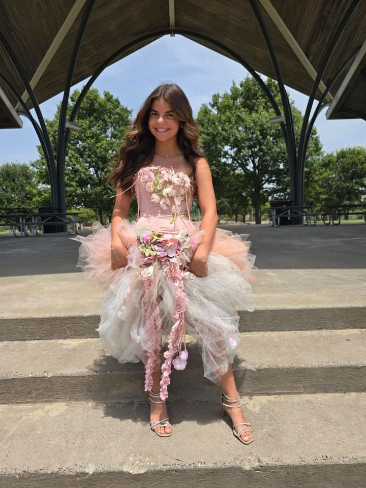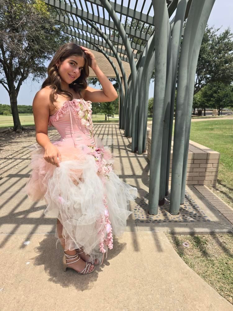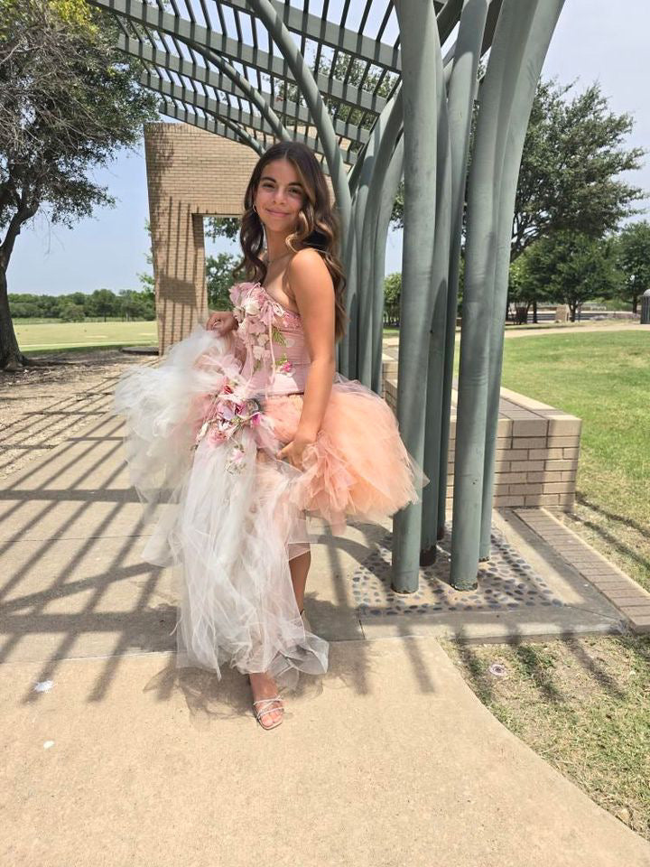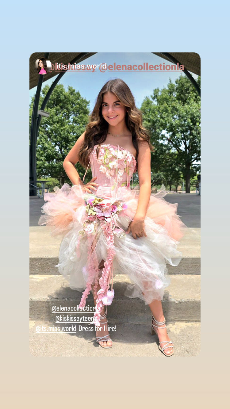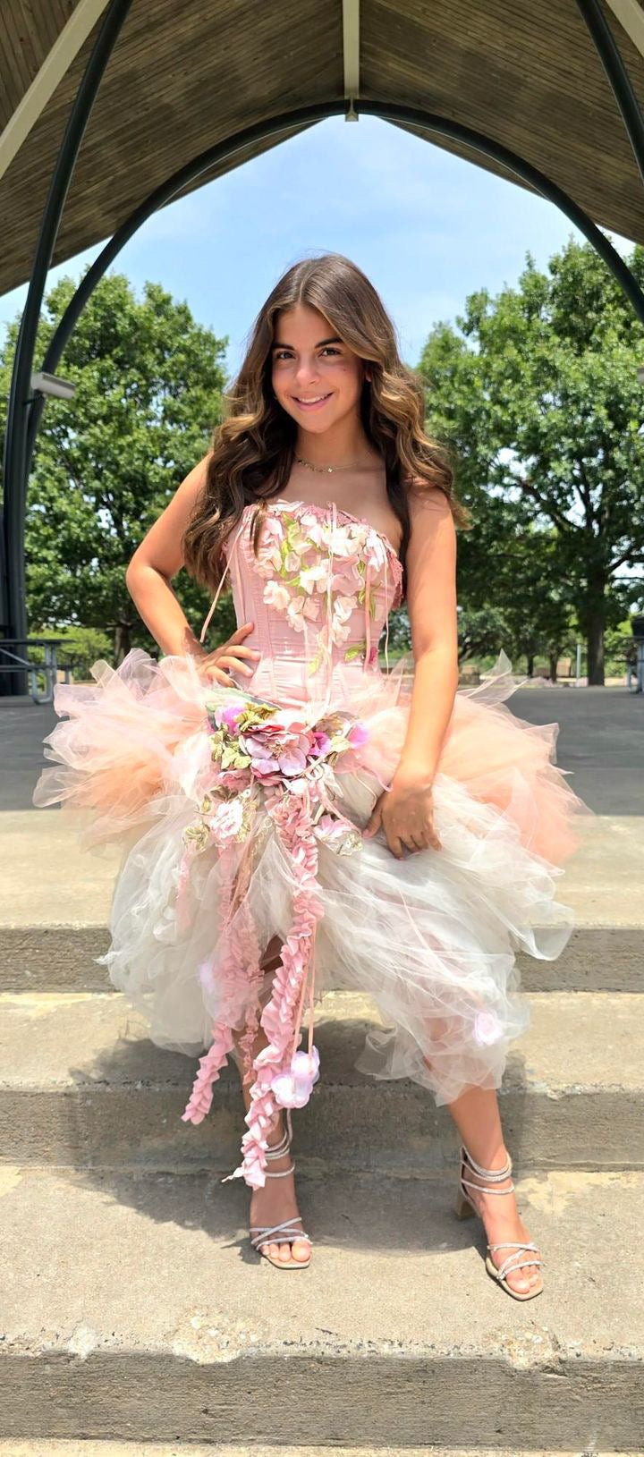 Rent - something couture unique fabulous! A3piece set corset.Featuring a hand made tulle tutu skirt SUPER FULL! And a 3D floral corset with adjustable corset back and boning all around for a perfect figure and comfort. It is perfect for a photoshoot, Red Carpet, runways. The train is detachable and can be worn to the back, side or front as it shows on our models. The corset can be dress down with jean shorts, jeans…