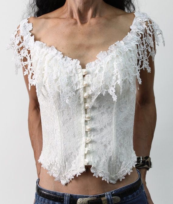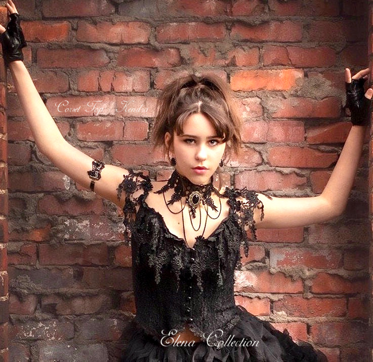 Corset Top, Black Lace Women Corset, Ivory Wedding Tops - Brides
