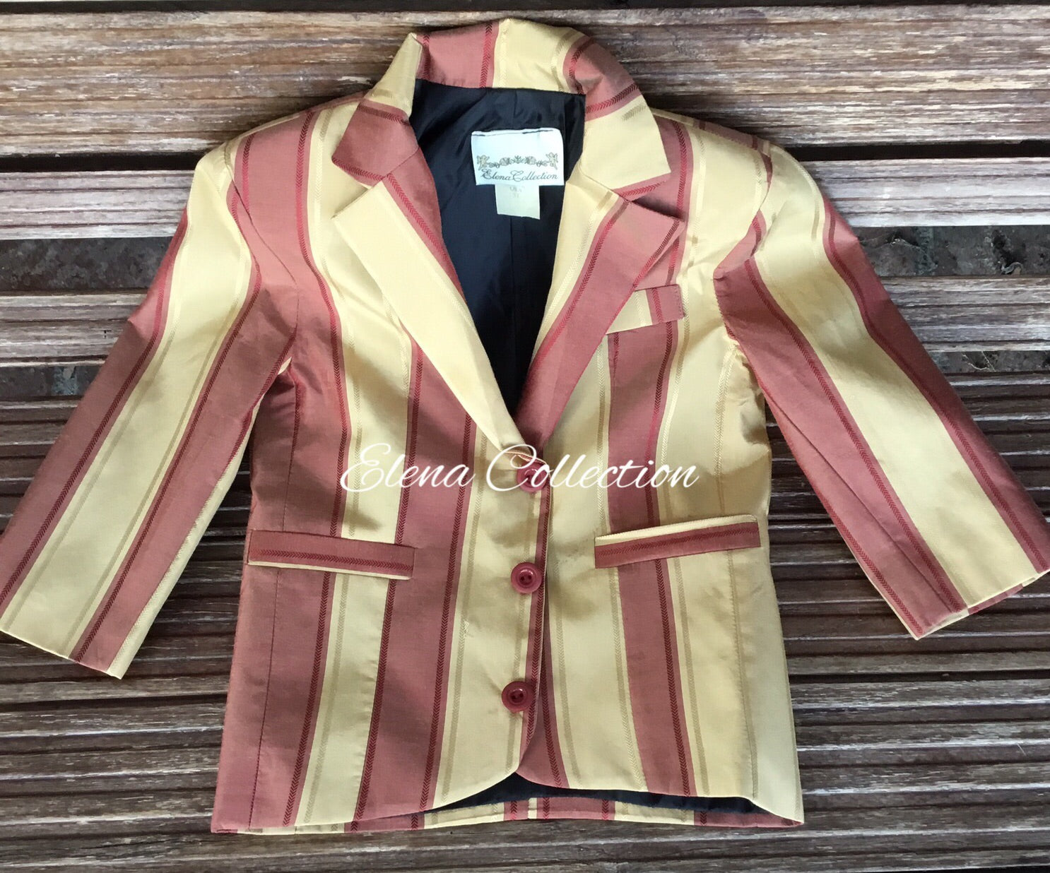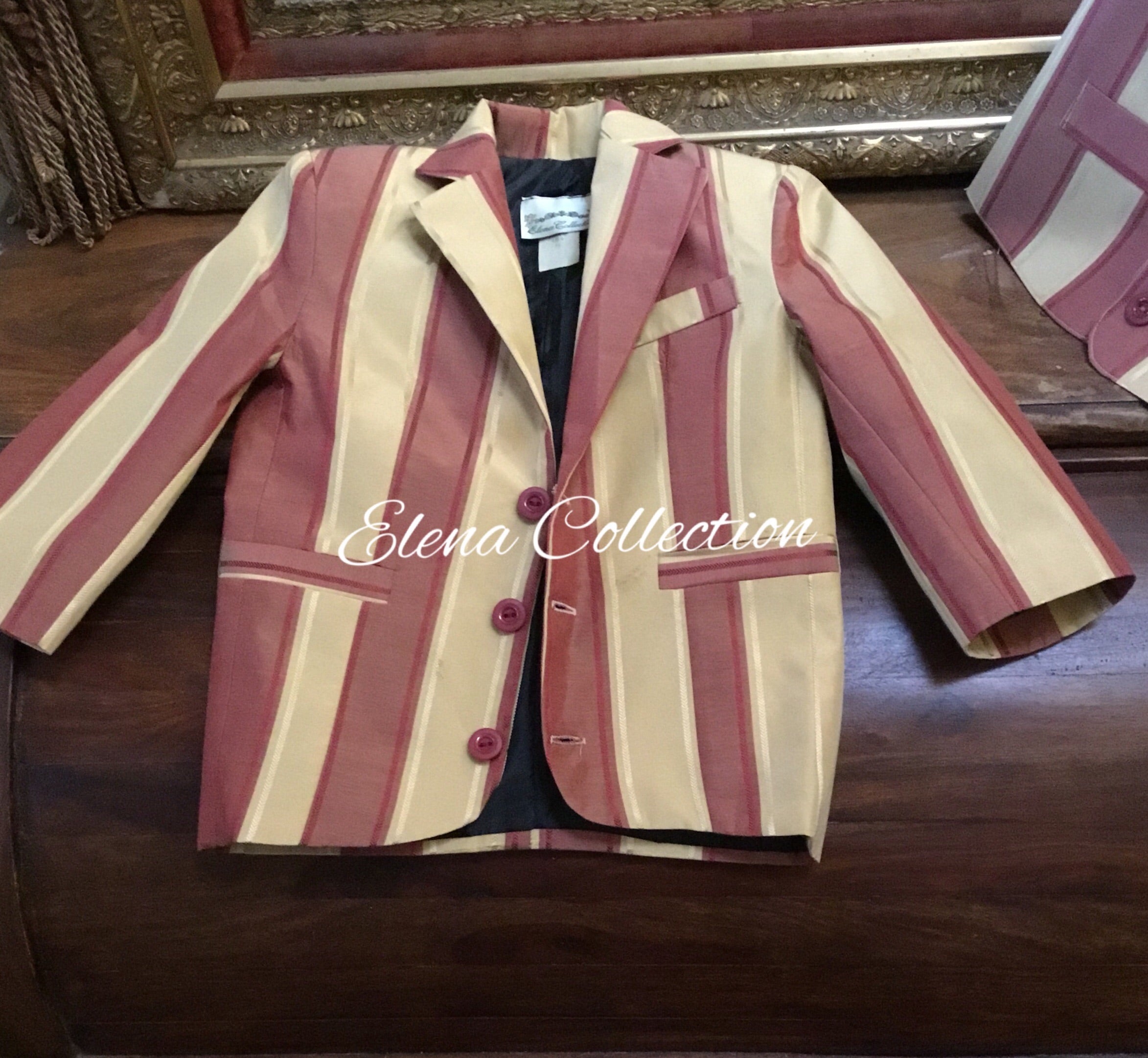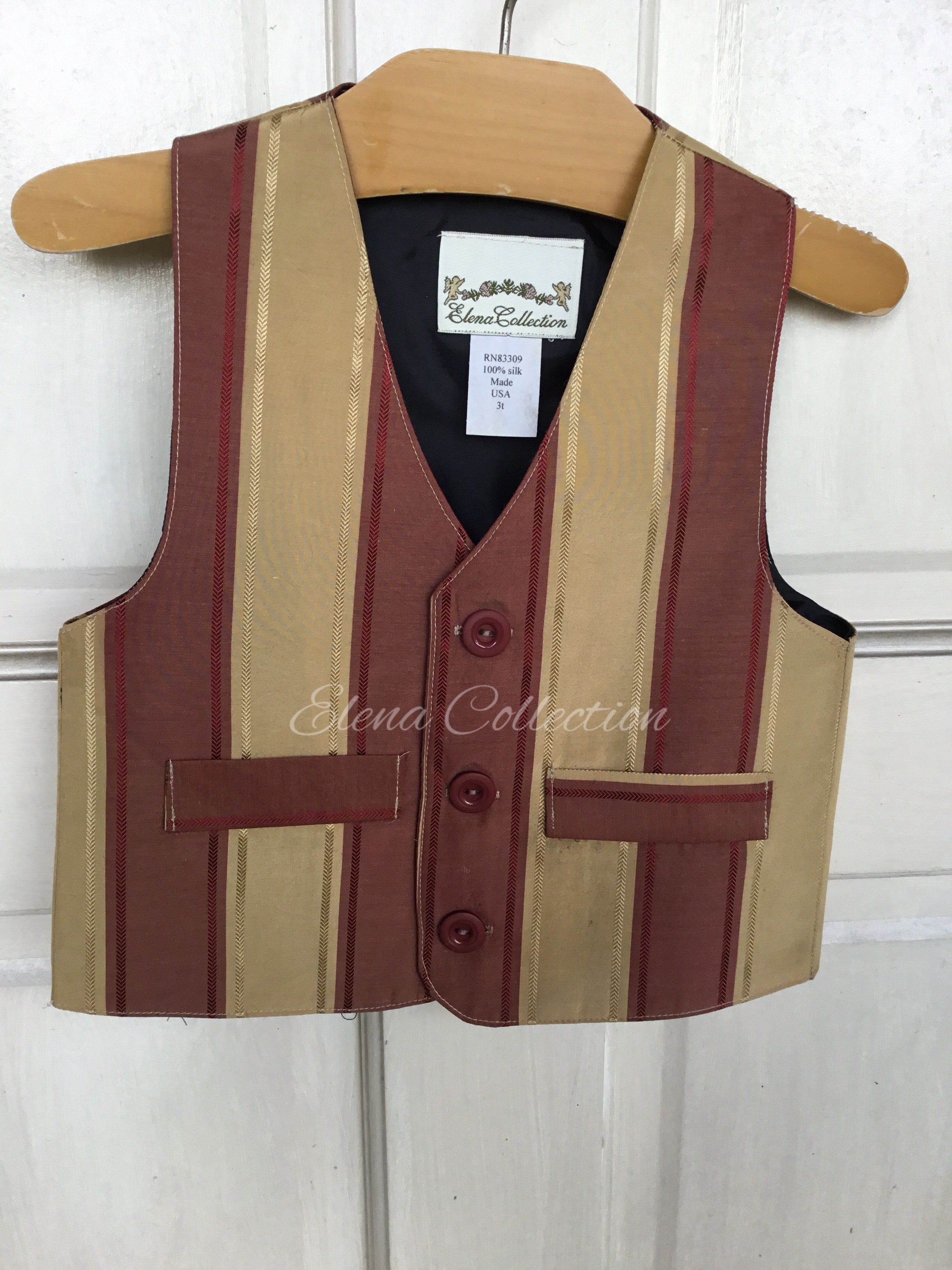 Luxury Silk Striped Toddler Vest & Jacket Set – Dark Beige & Rust