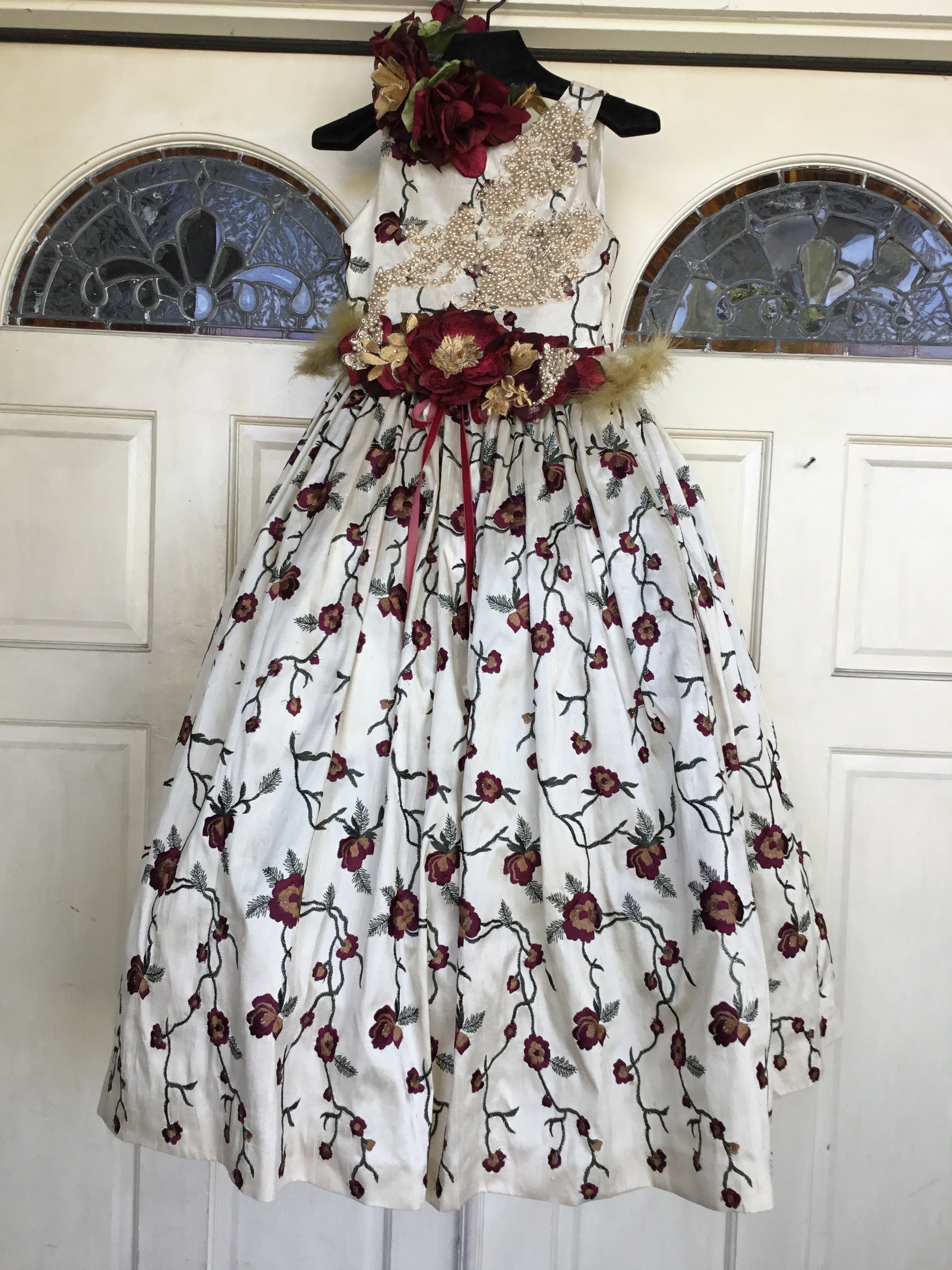 Our beautiful silk embroidered couture dress perfect for any special events. Beautifully made in our studio for our runway show. Now you can preordered yours!