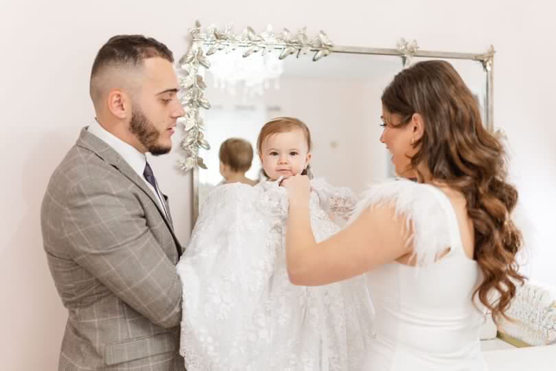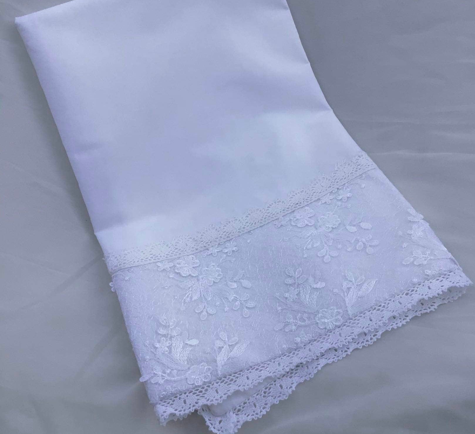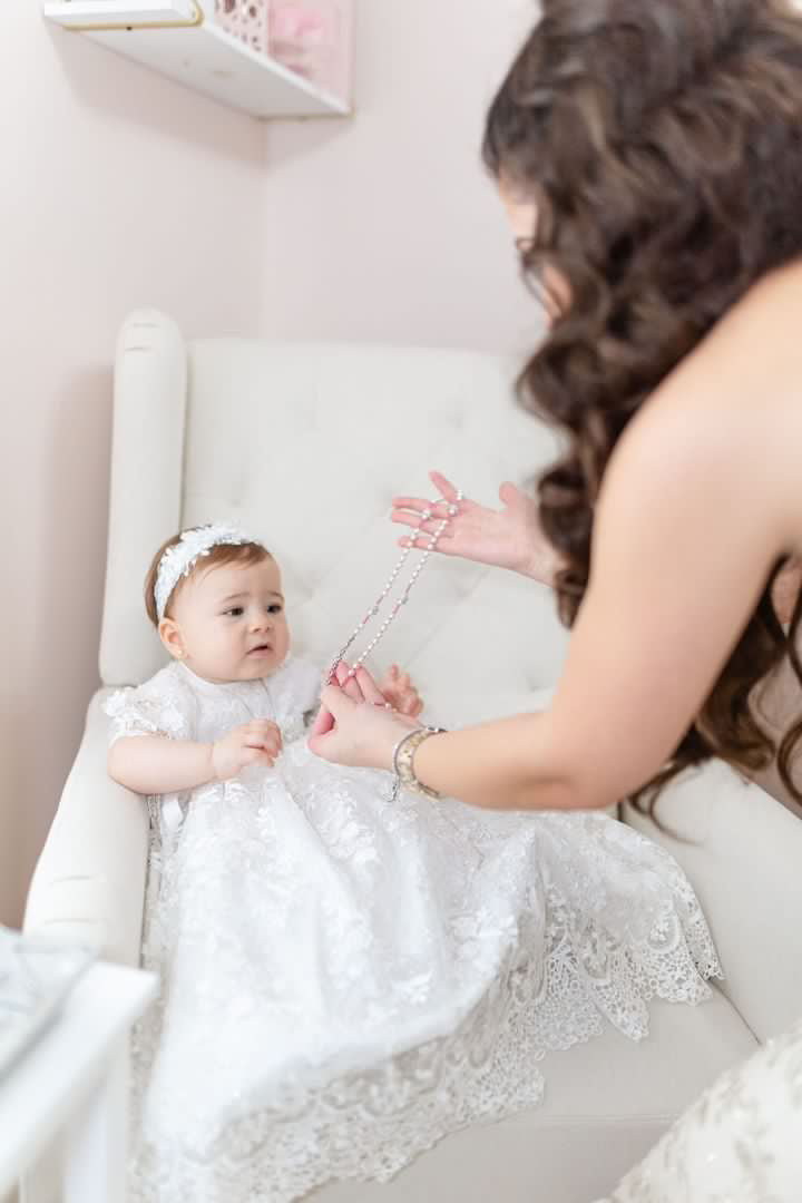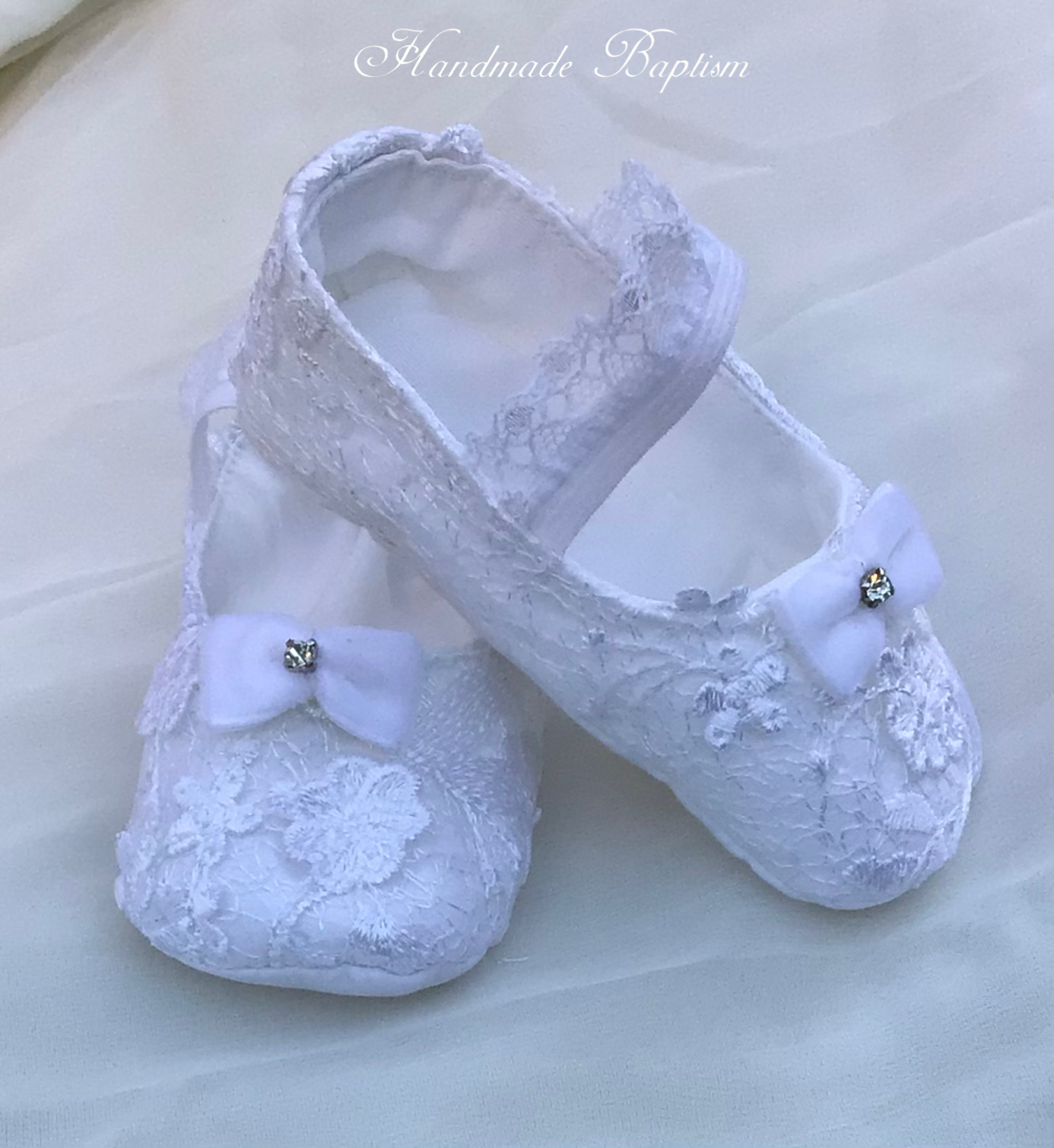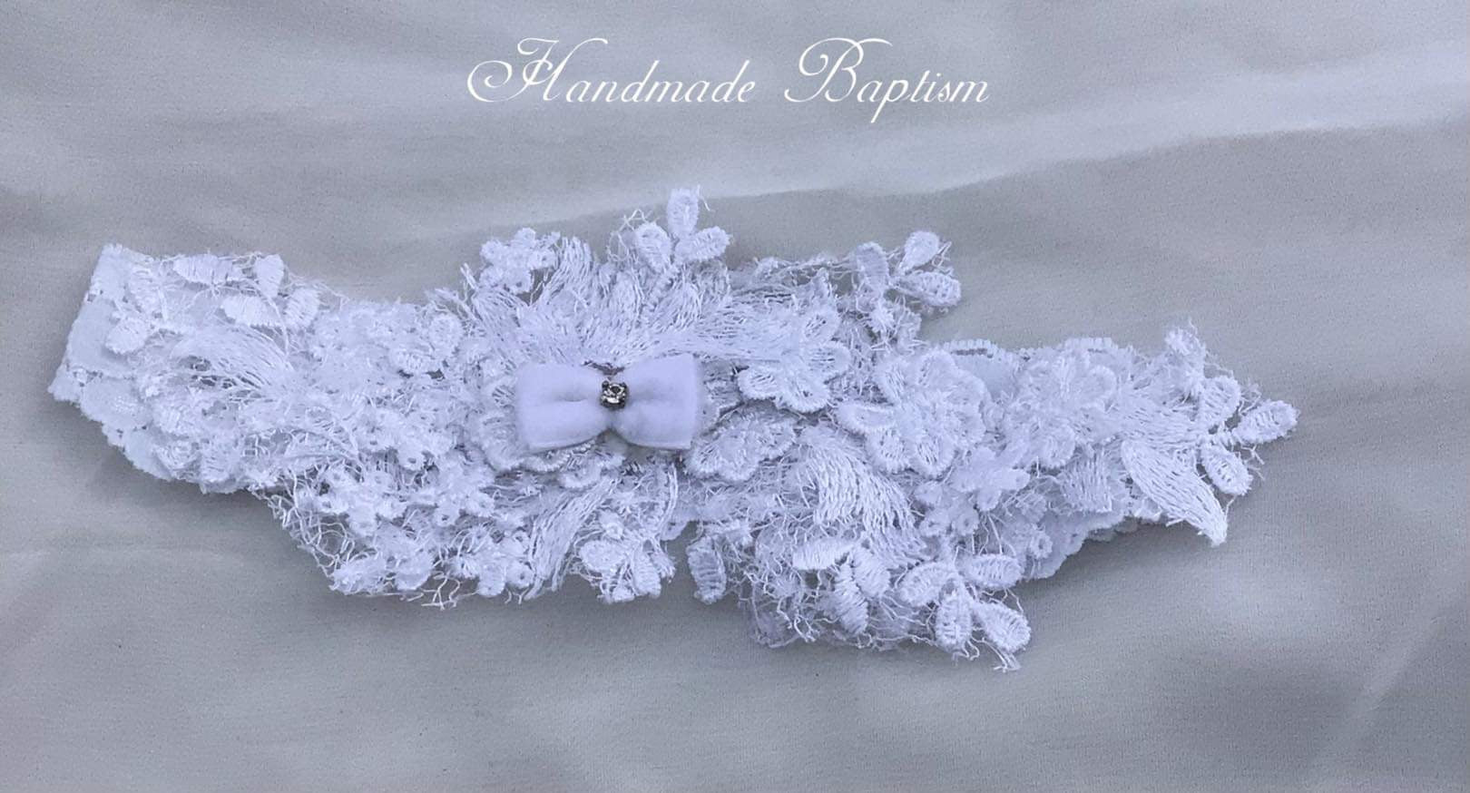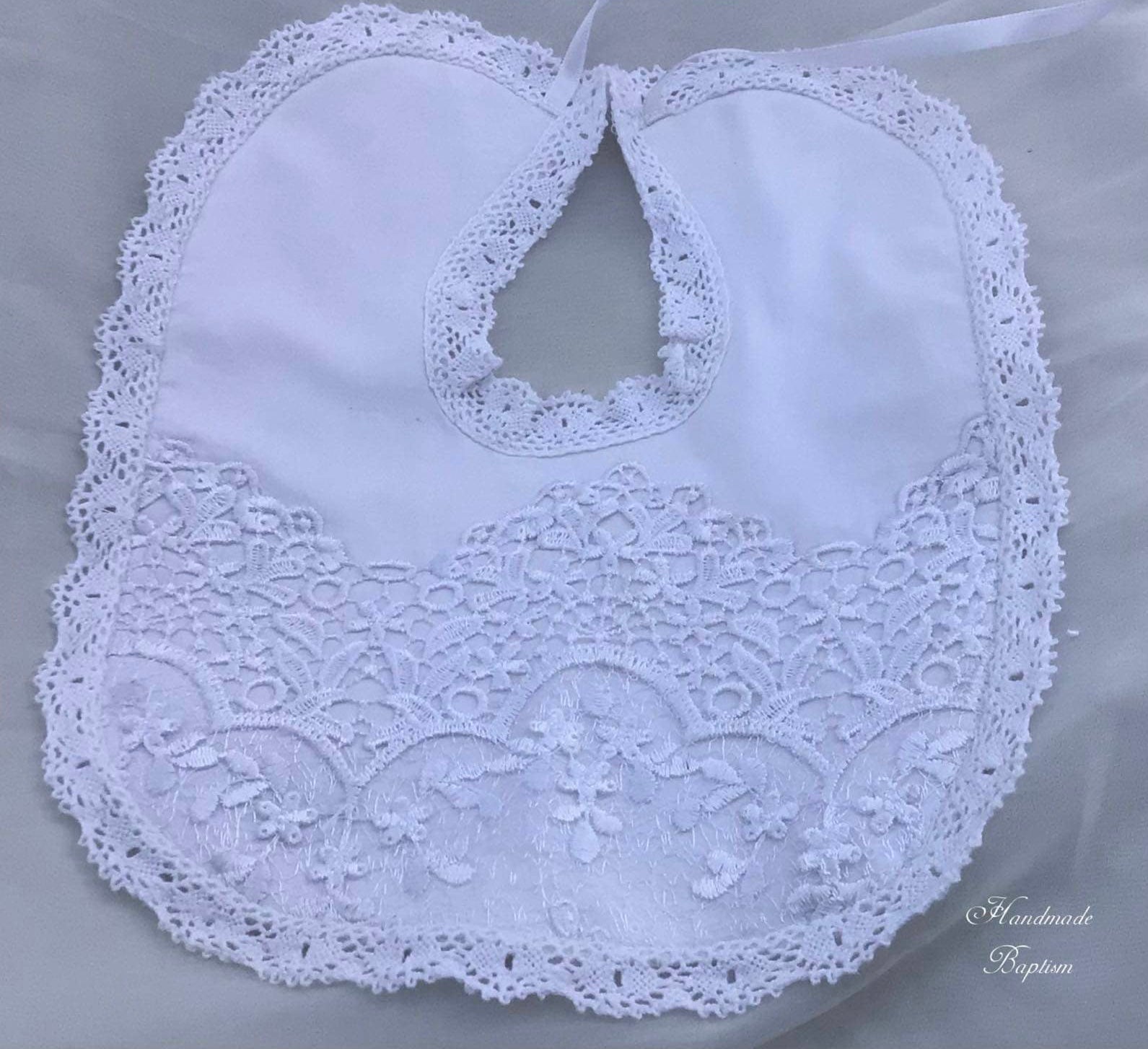 The Lace Adel Christening Gown is a beautifully handcrafted heirloom piece, designed for your baby's special baptism day. It features exquisite 3D embroidered white lace with sequins overlaid on satin, paired with a matching bonnet and sheer lace sleeves trimmed with Venetian lace. The gown is fully lined with 100% pure cotton for comfort and measures 33 inches in length. Fabrics: - Satin - Lace - Tulle - Fusing - Sequins This true-to-size gown is made to order and ships worldwide from California. Custom sizing and coordinating accessories are available to complete this luxurious baptism ensemble destined to be treasured for generations. Dry clean only.