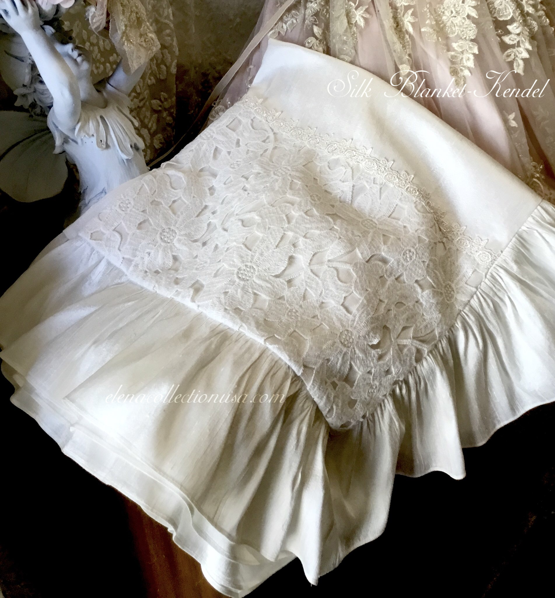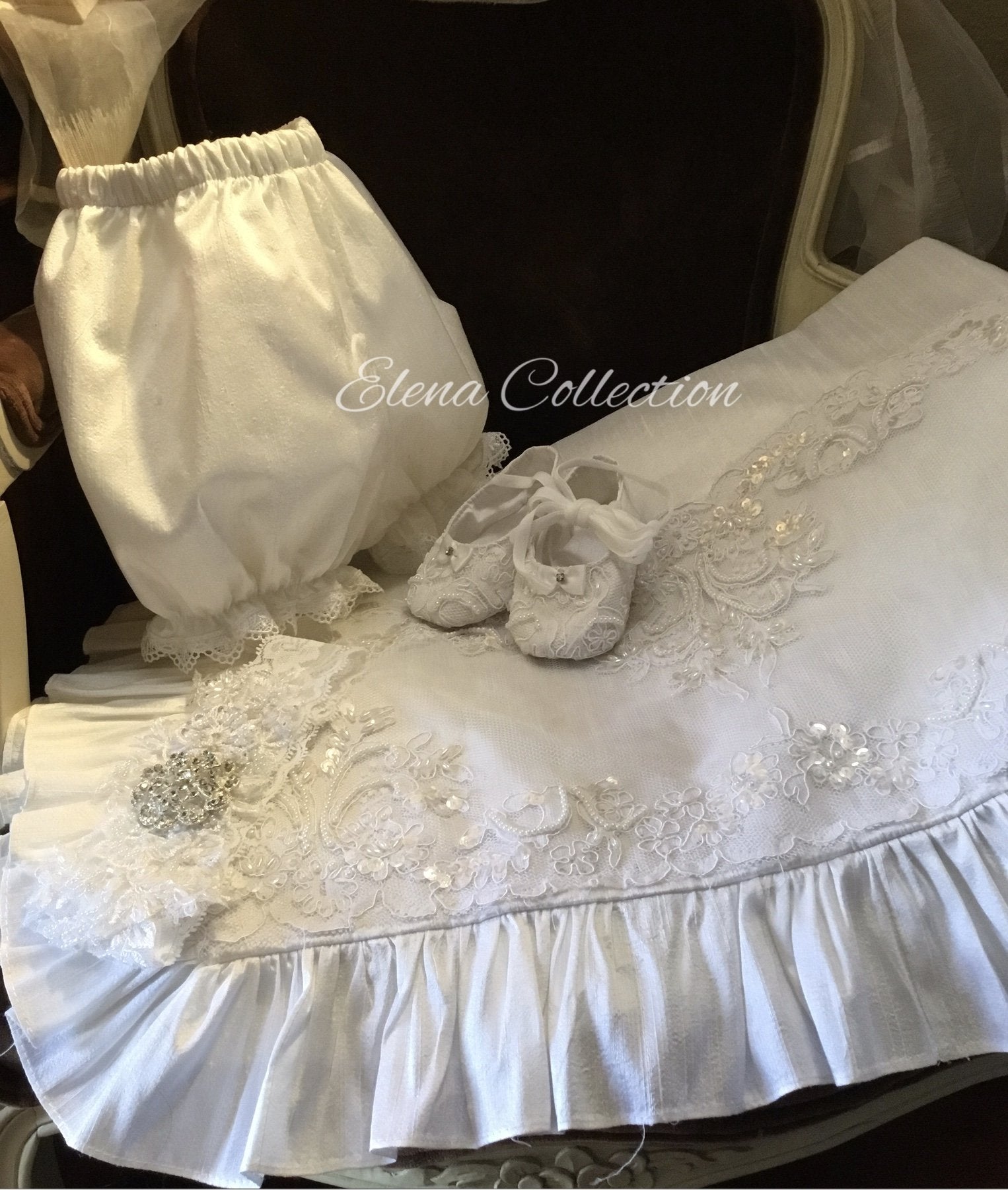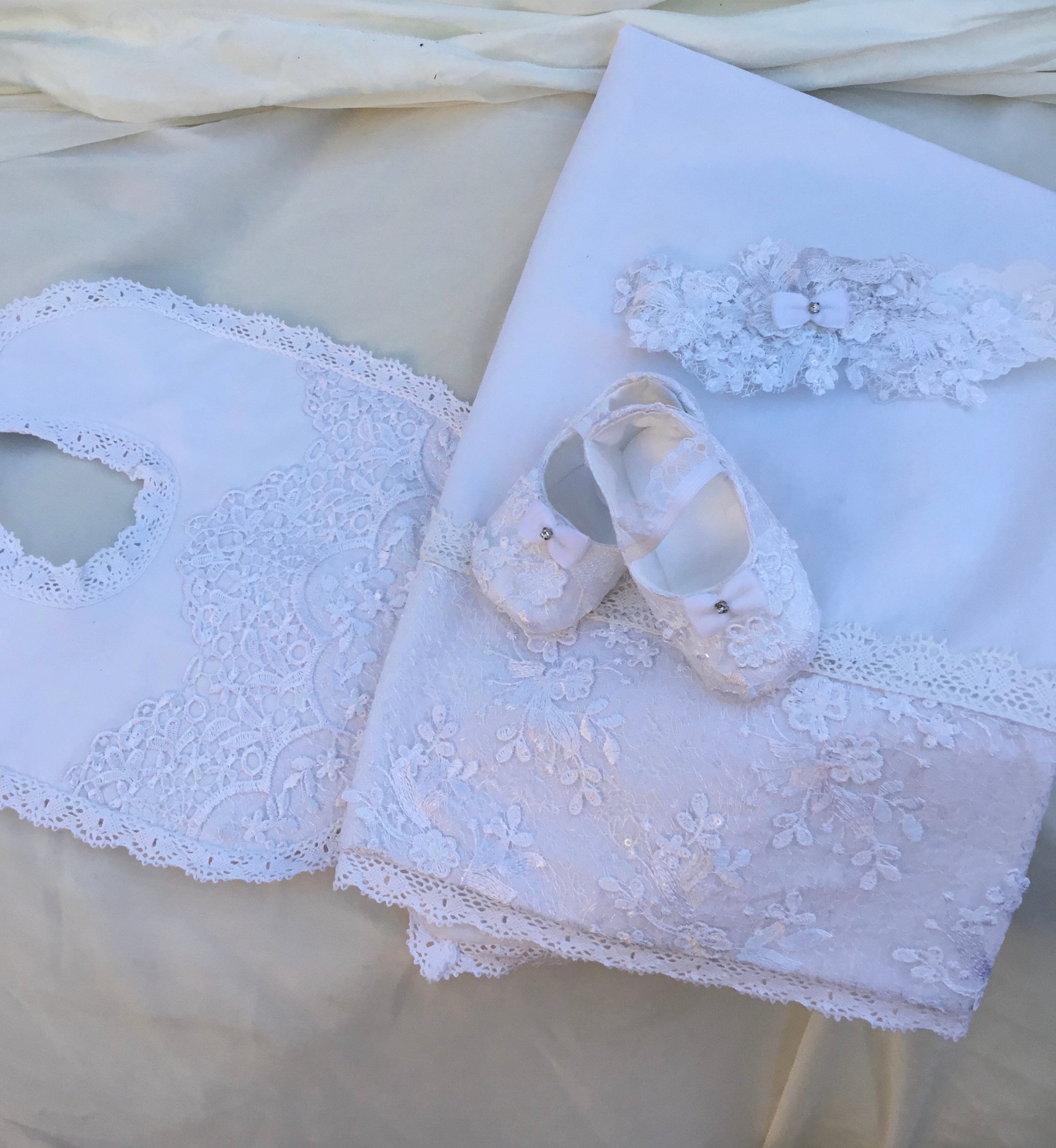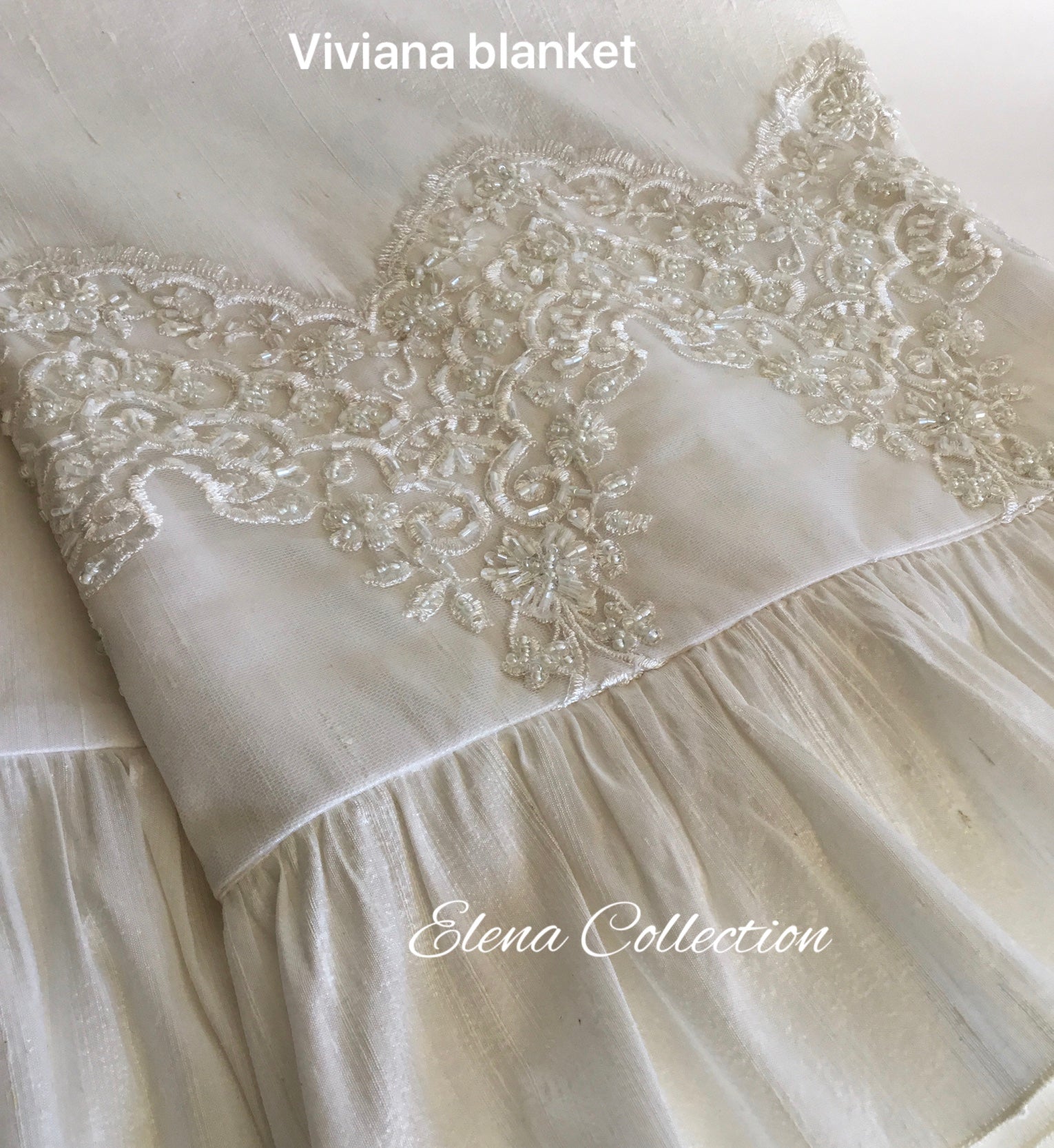 Elevate your baby's special day with the MATCHING Silk Blanket 36x36, crafted to perfectly complement your elegant christening gown. This blanket features a lustrous silk outer layer that radiates refined luxury, paired with a soft cotton lining that ensures delicate comfort against your baby's skin. Generously sized to provide warmth and gentle coziness, it offers both practicality and sophistication. Designed as a harmonious accessory, it enhances the overall ensemble with an air of timeless opulence while serving as a cherished keepsake for years to come. Indulge in pure elegance with this beautifully coordinated silk blanket.