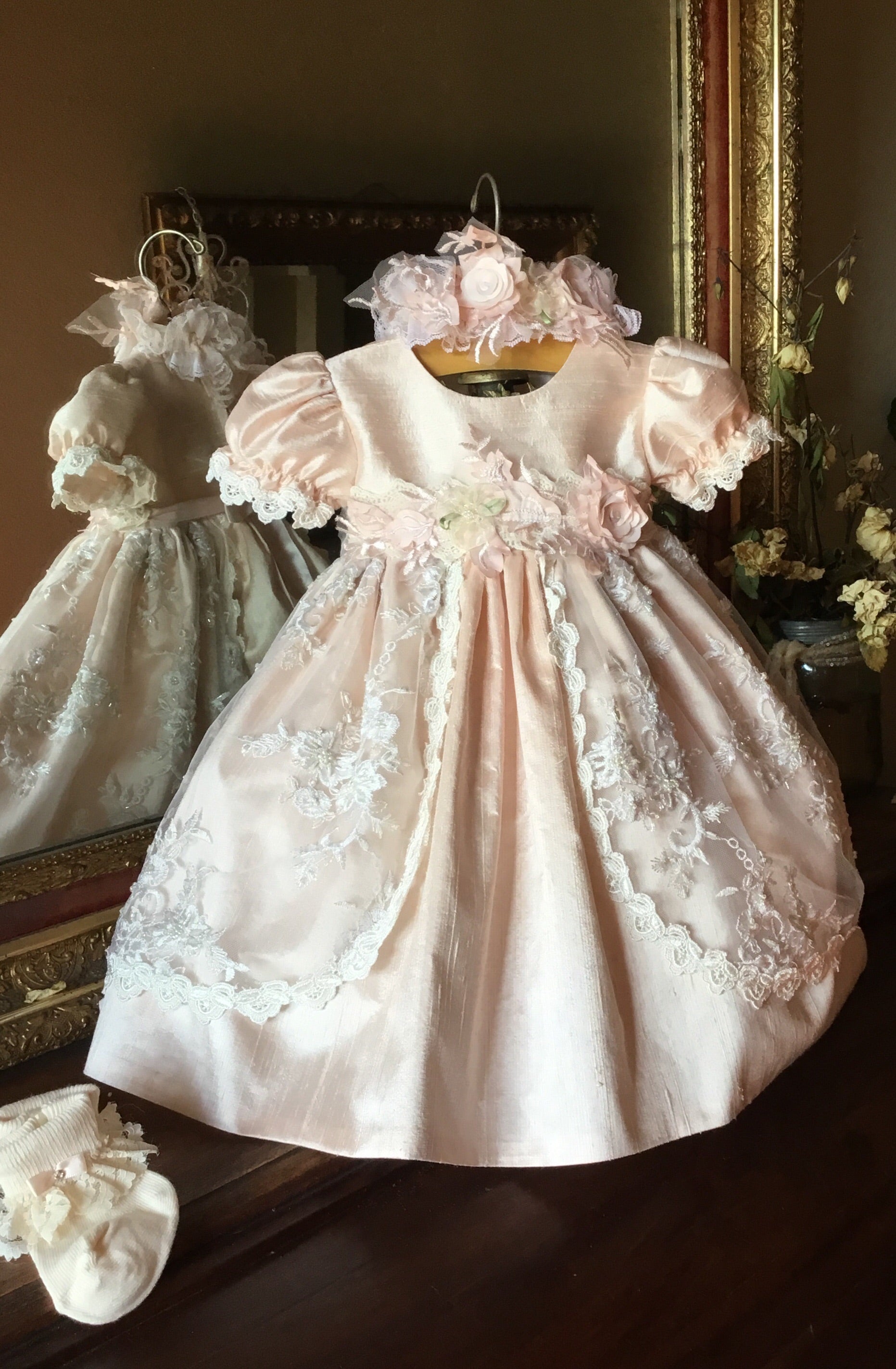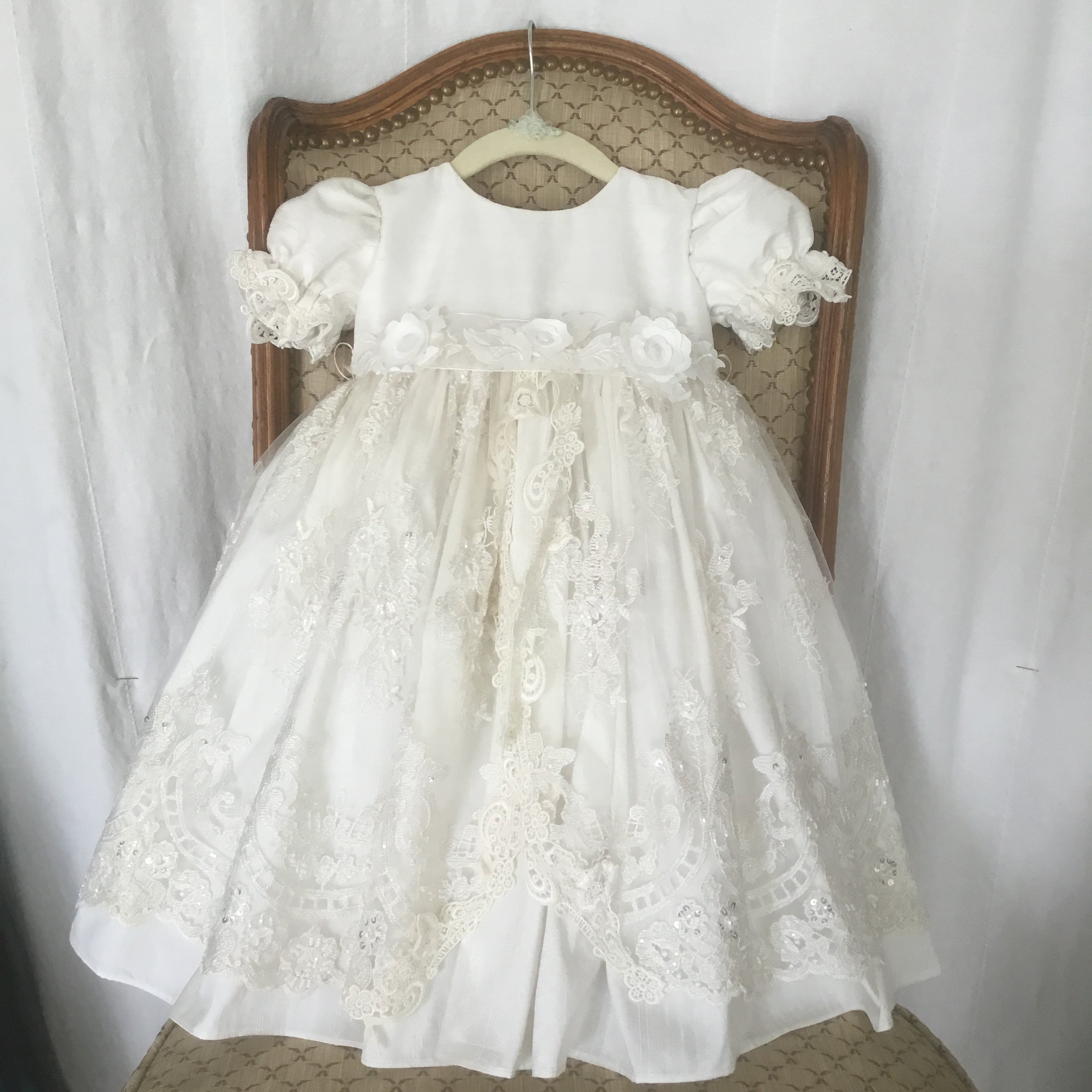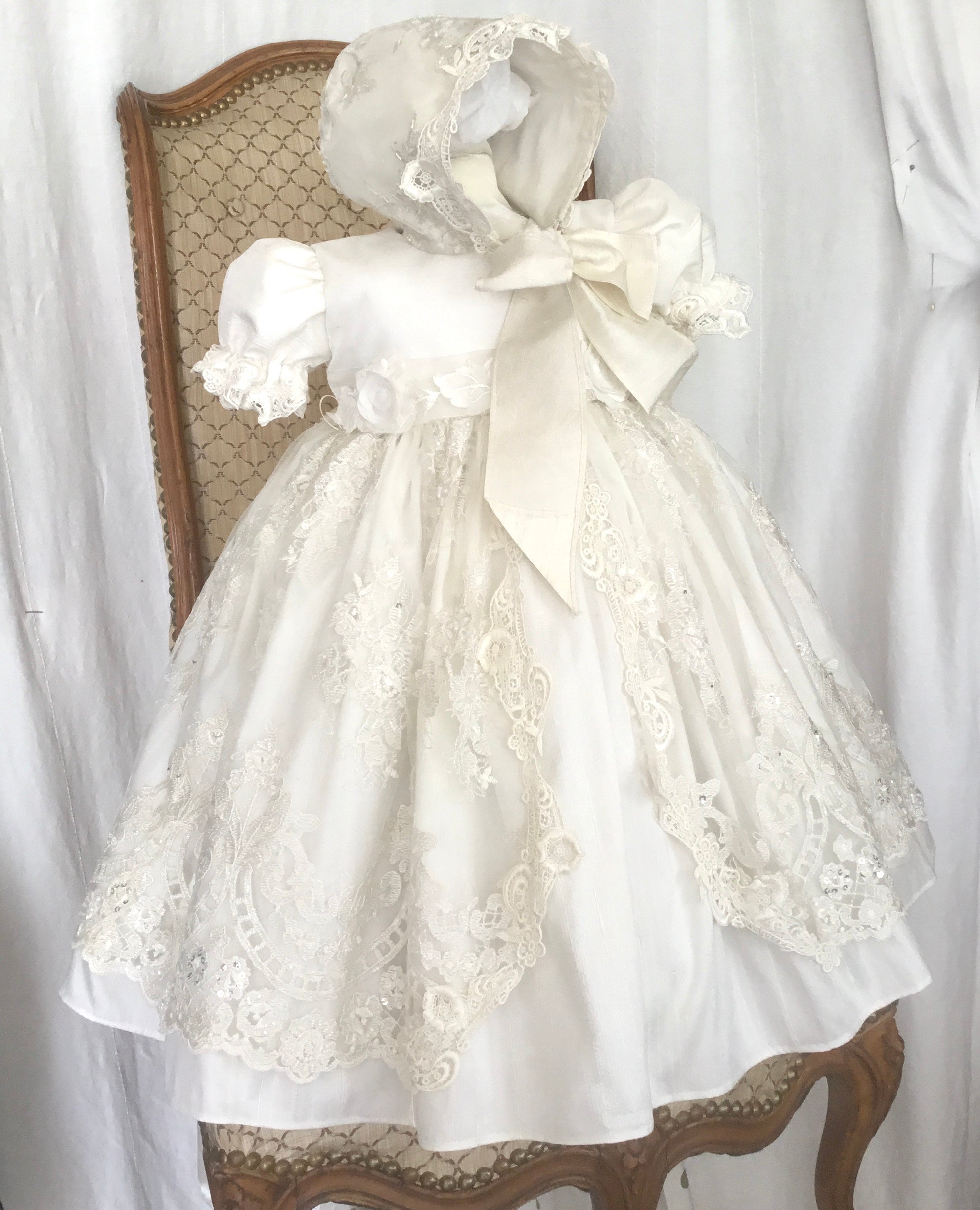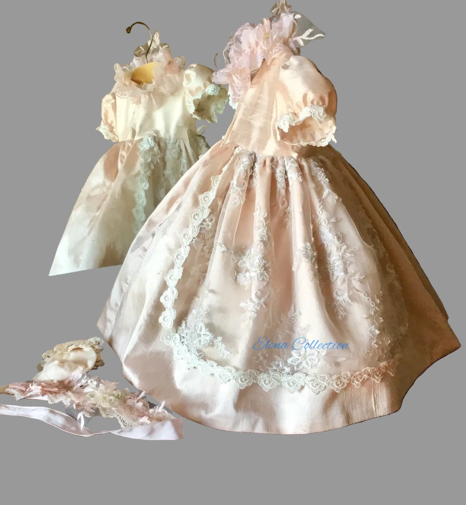 Silk & Lace Heirloom Christening Dress with Bonnet or Headband