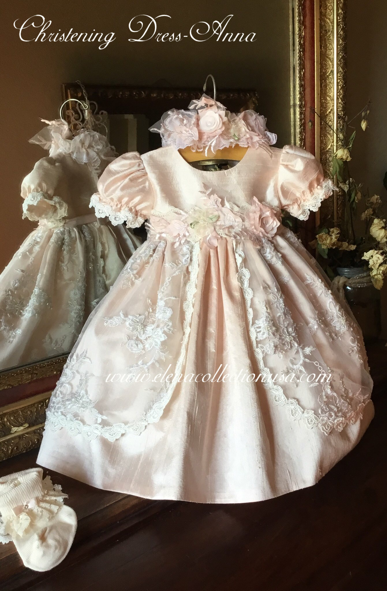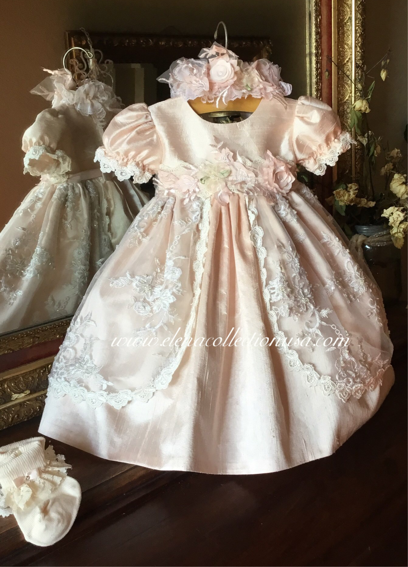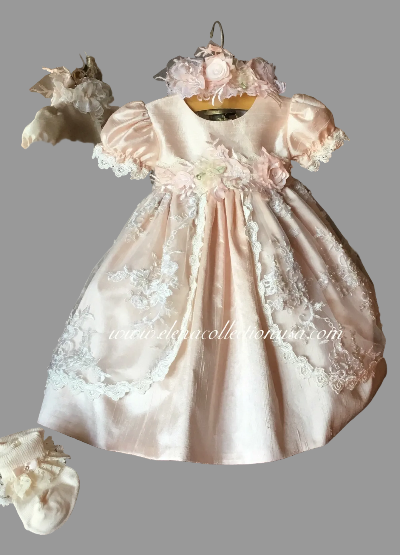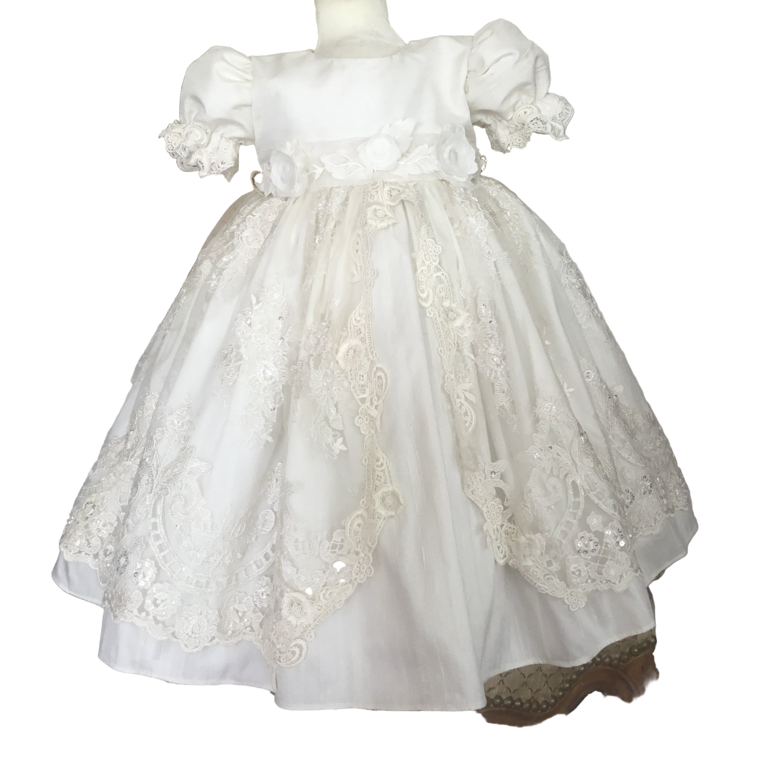 Silk & Lace Heirloom Christening Dress with Bonnet or Headband