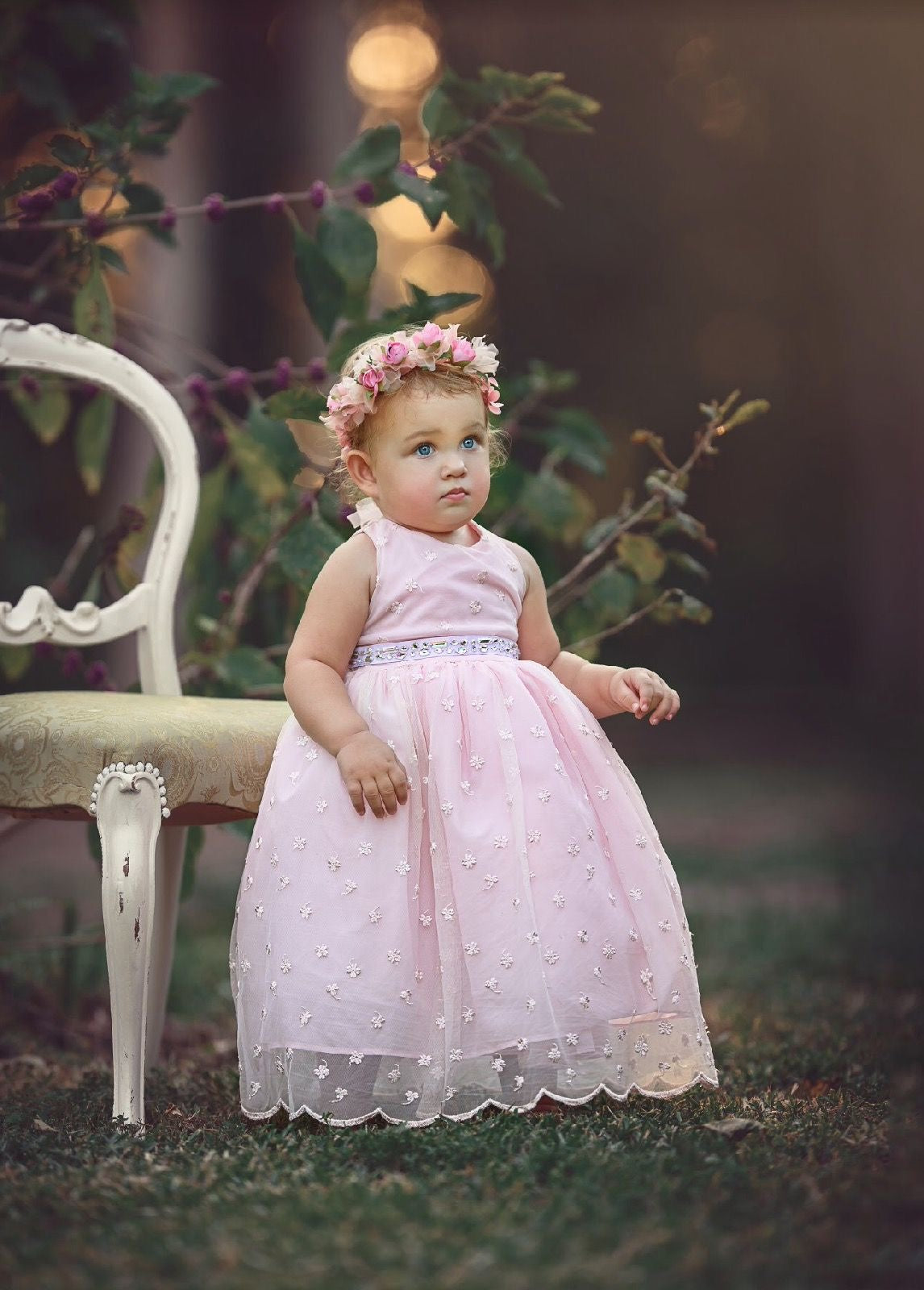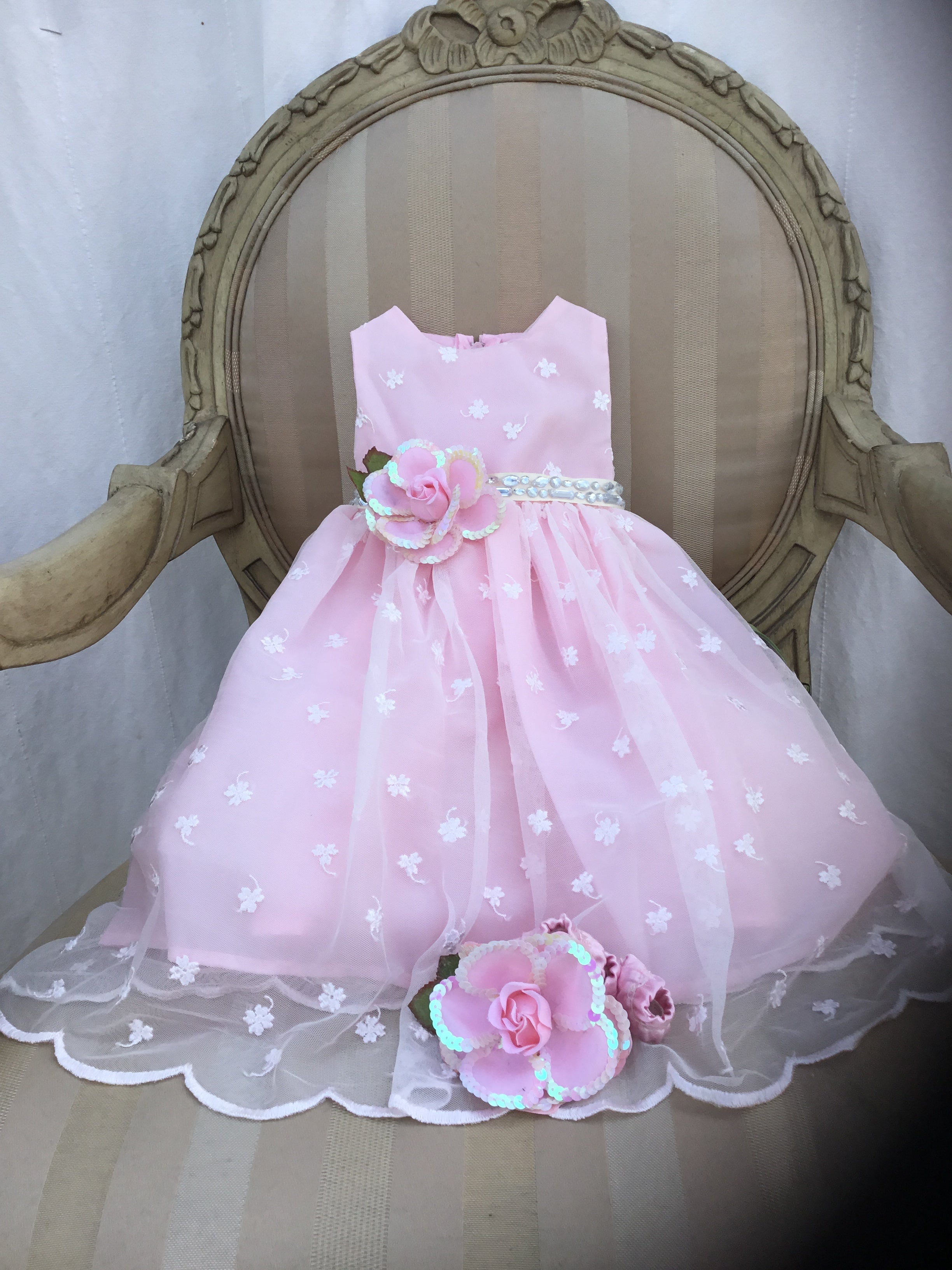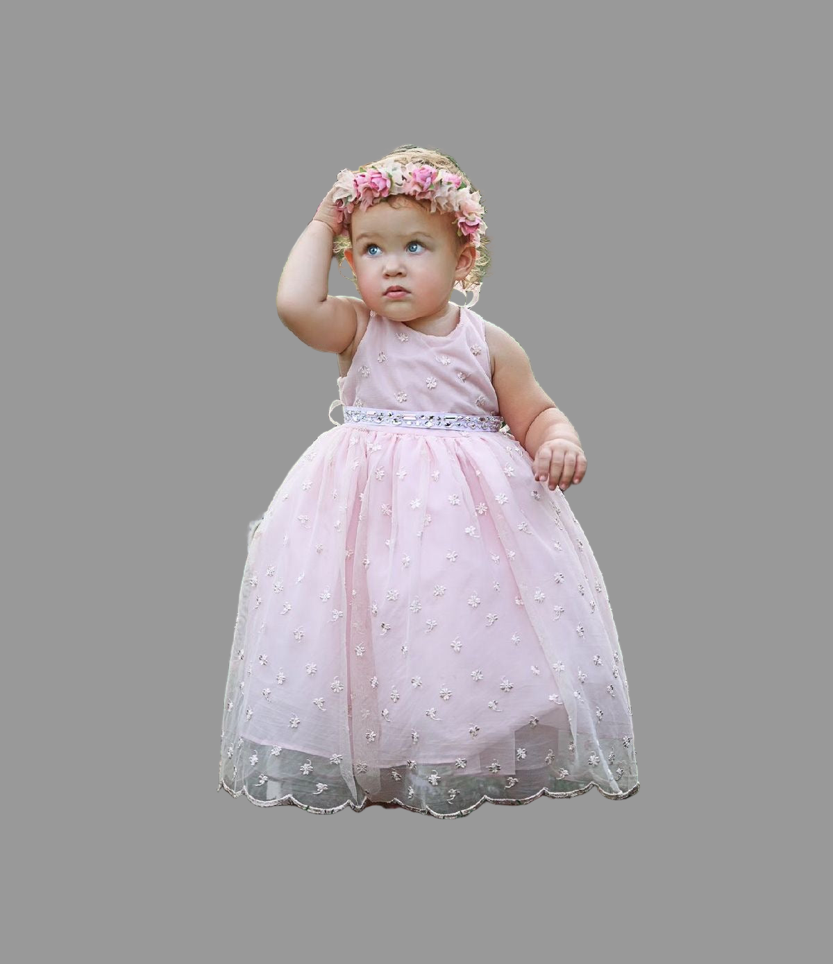 Capture precious moments with this enchanting pink embroidered baby dress, perfect for birthdays, photo sessions, flower girl occasions, or any special event. The delicate floral embroidery and tulle overlay create a dreamy, princess-like look.