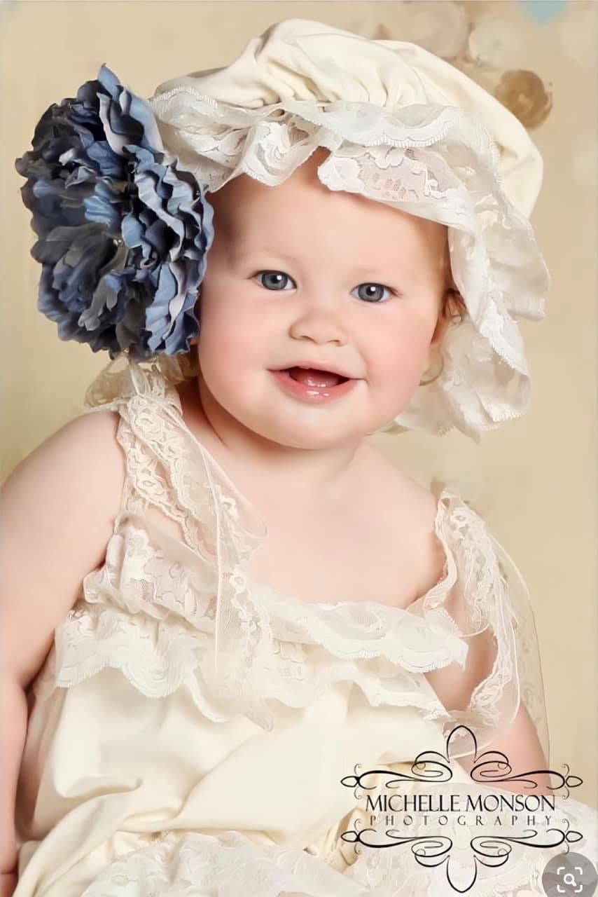 Clarissa onesie, is a vintage inspired cotton jersey and lace adjustable romper. Your l little girl will enjoy this unique and comfortable piece. The perfect piece to have in your little girls' closet! Featuring adjustable lace straps to match the lace on the edge of the legs and chest. Perfect for photography fits toddlers and 18, 24m.