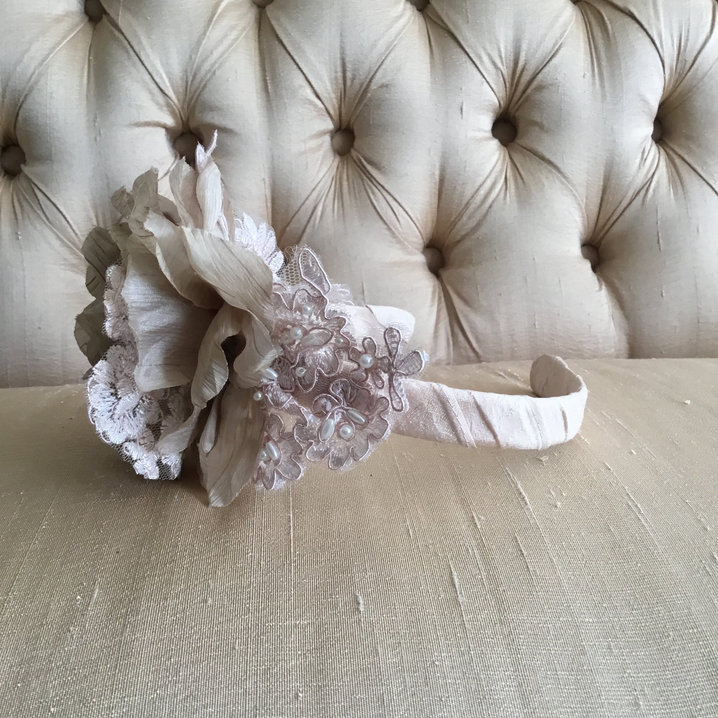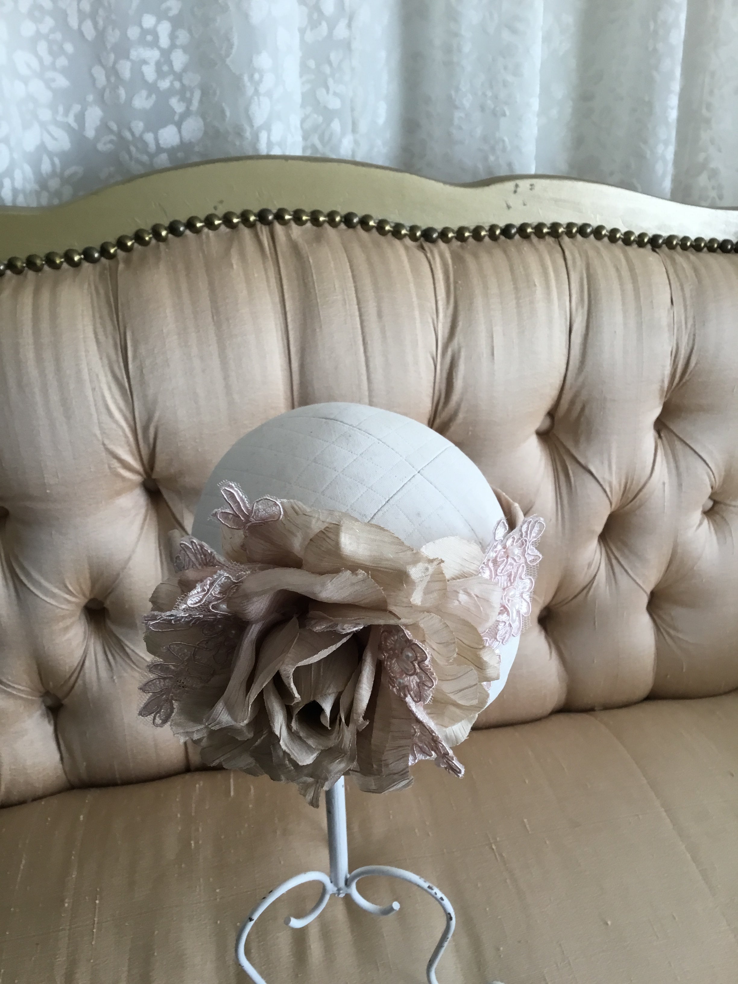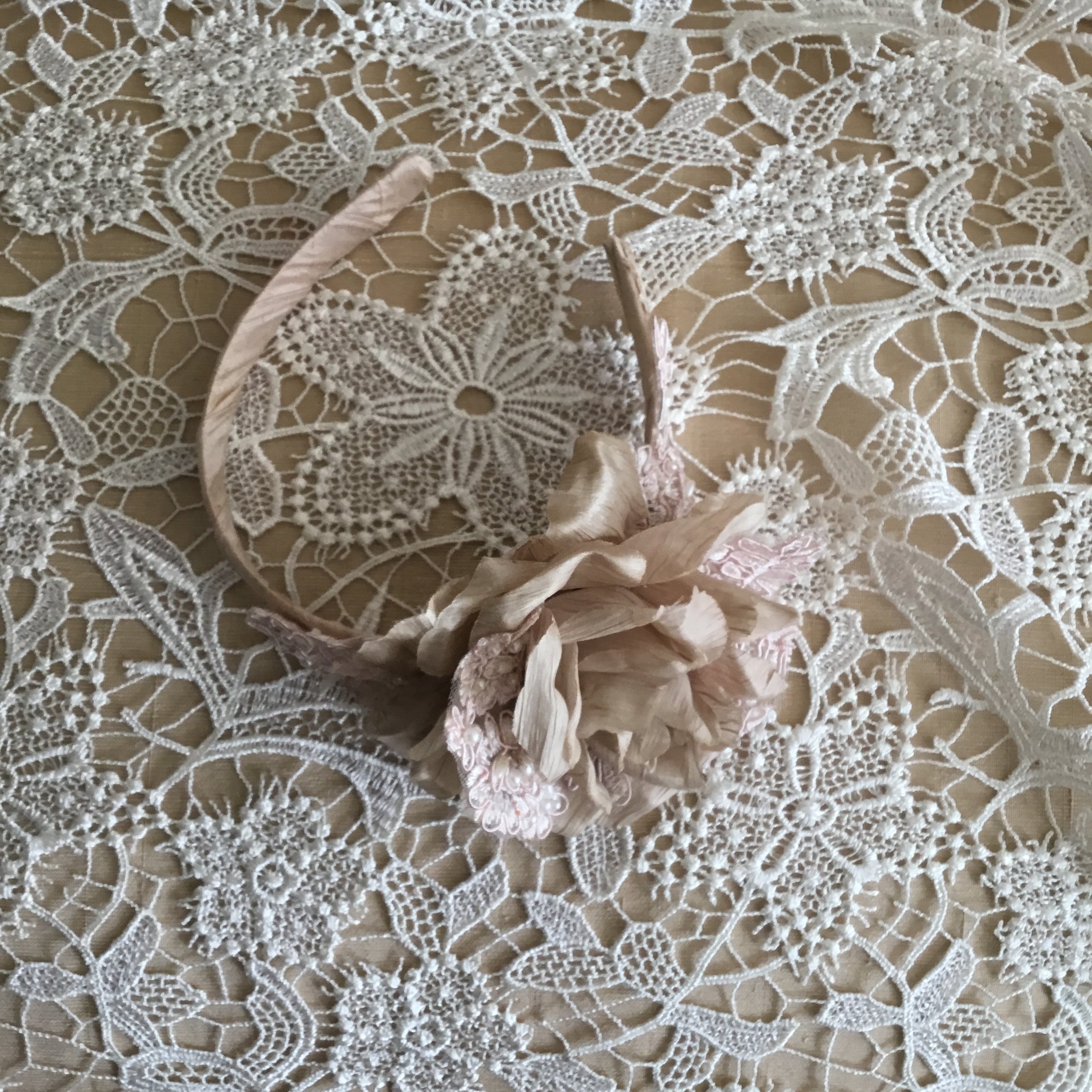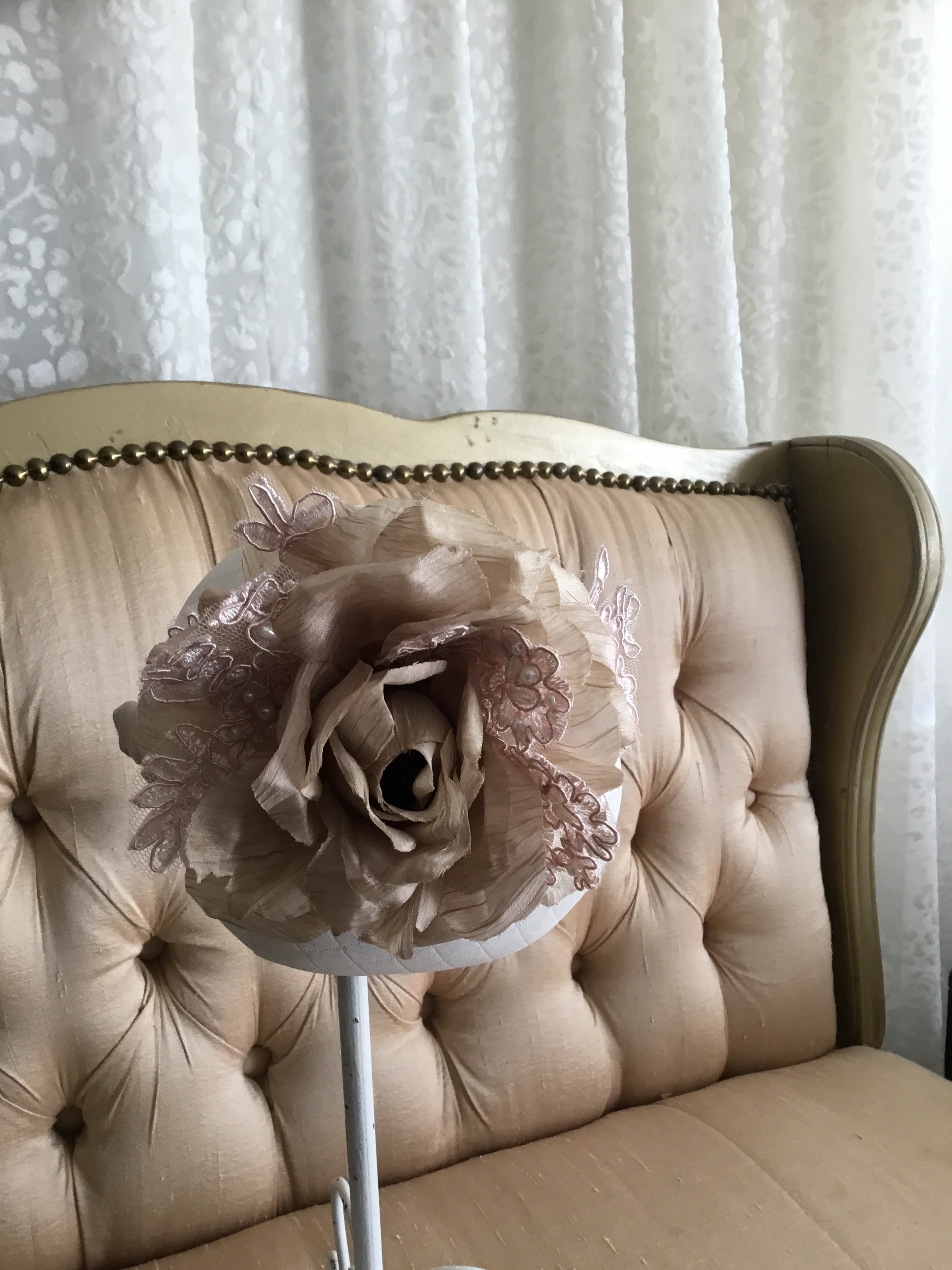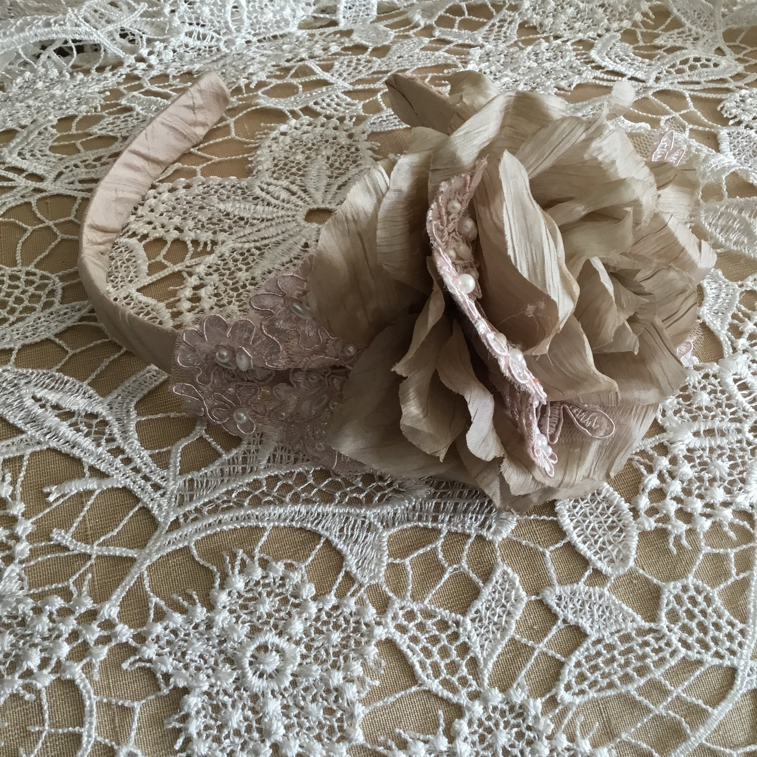 . Flower is secure attached with adhesive to an 1” wide plastic base headband. Headband will fit most 5 year olds and adults.