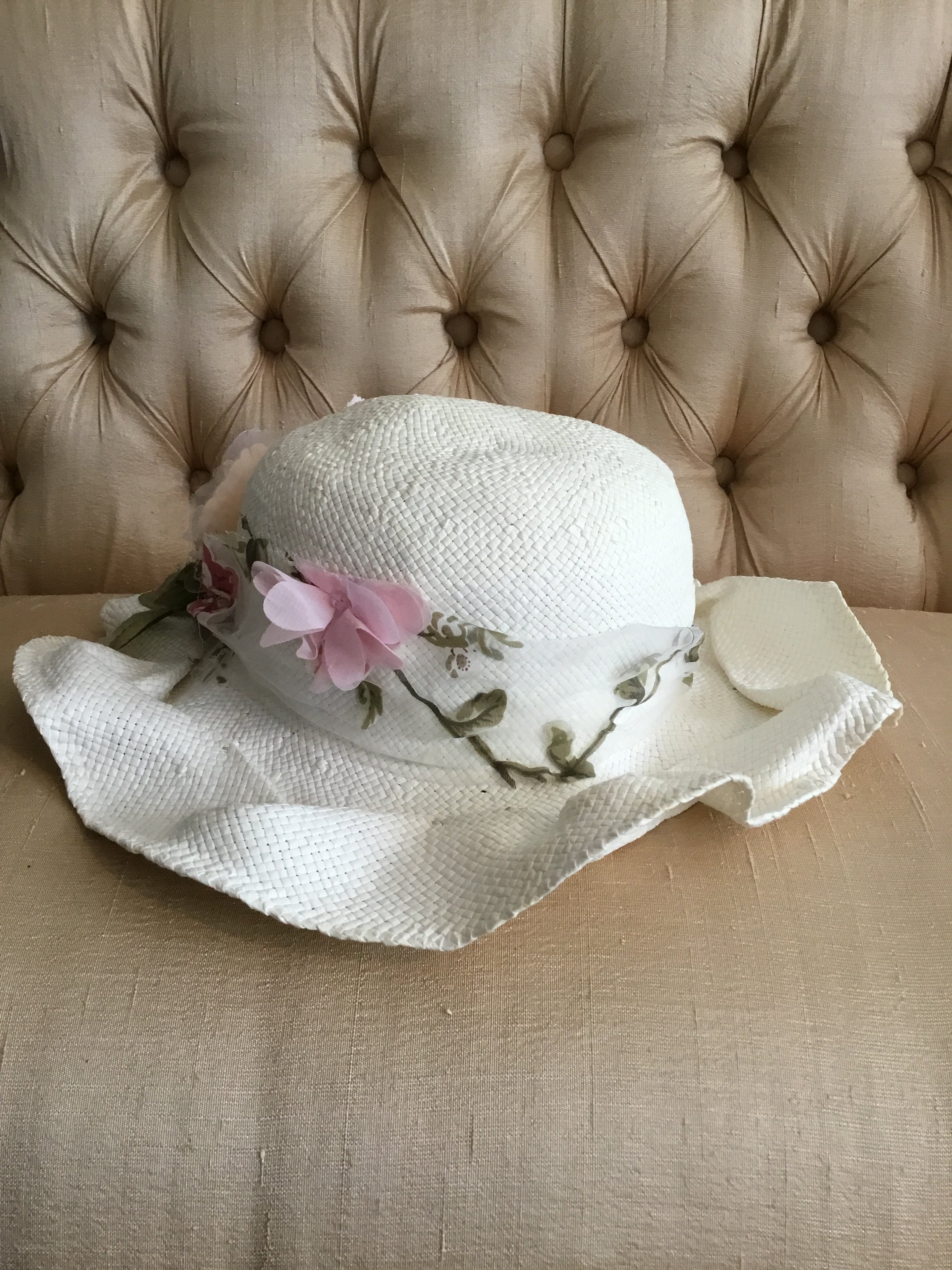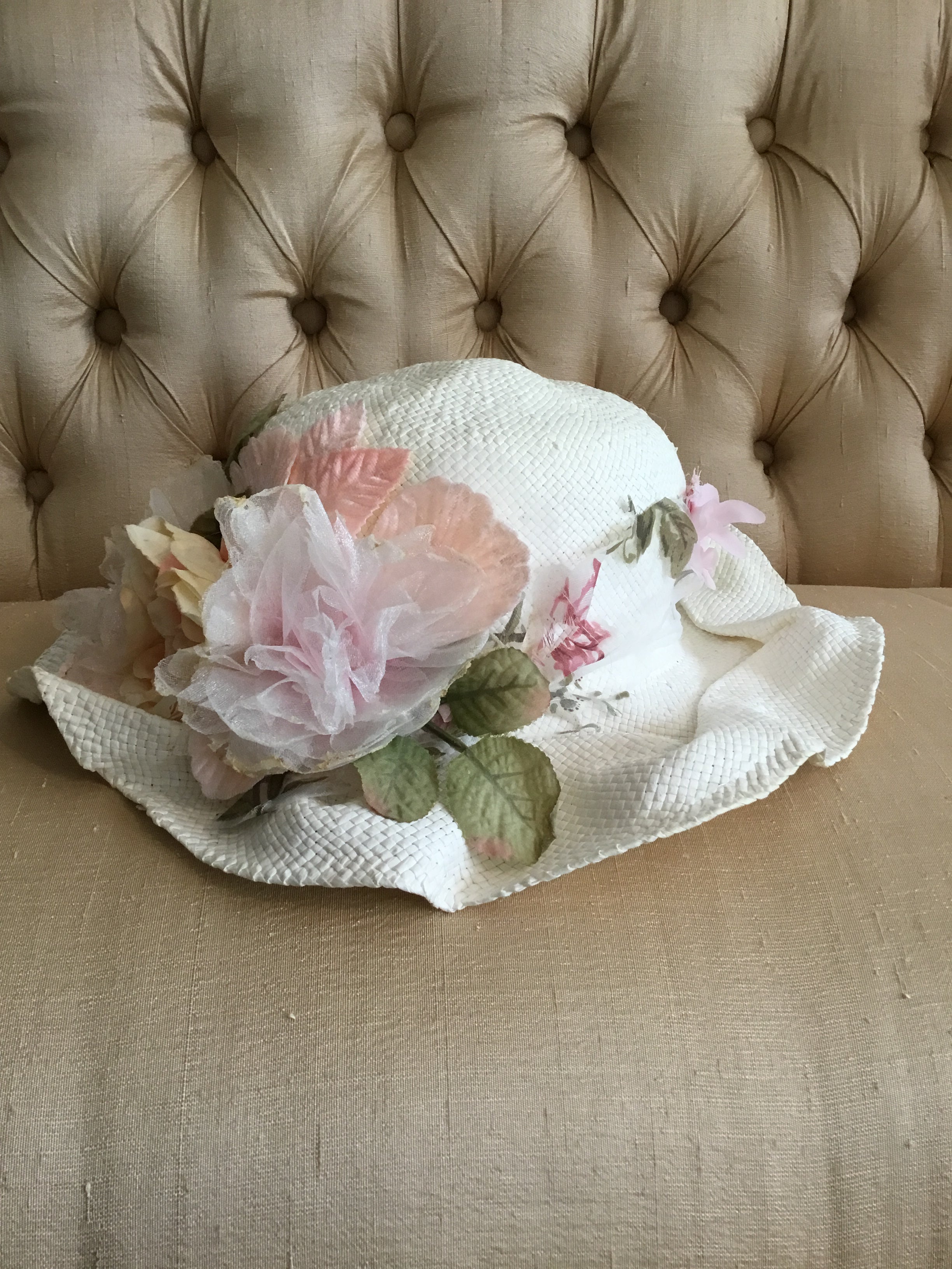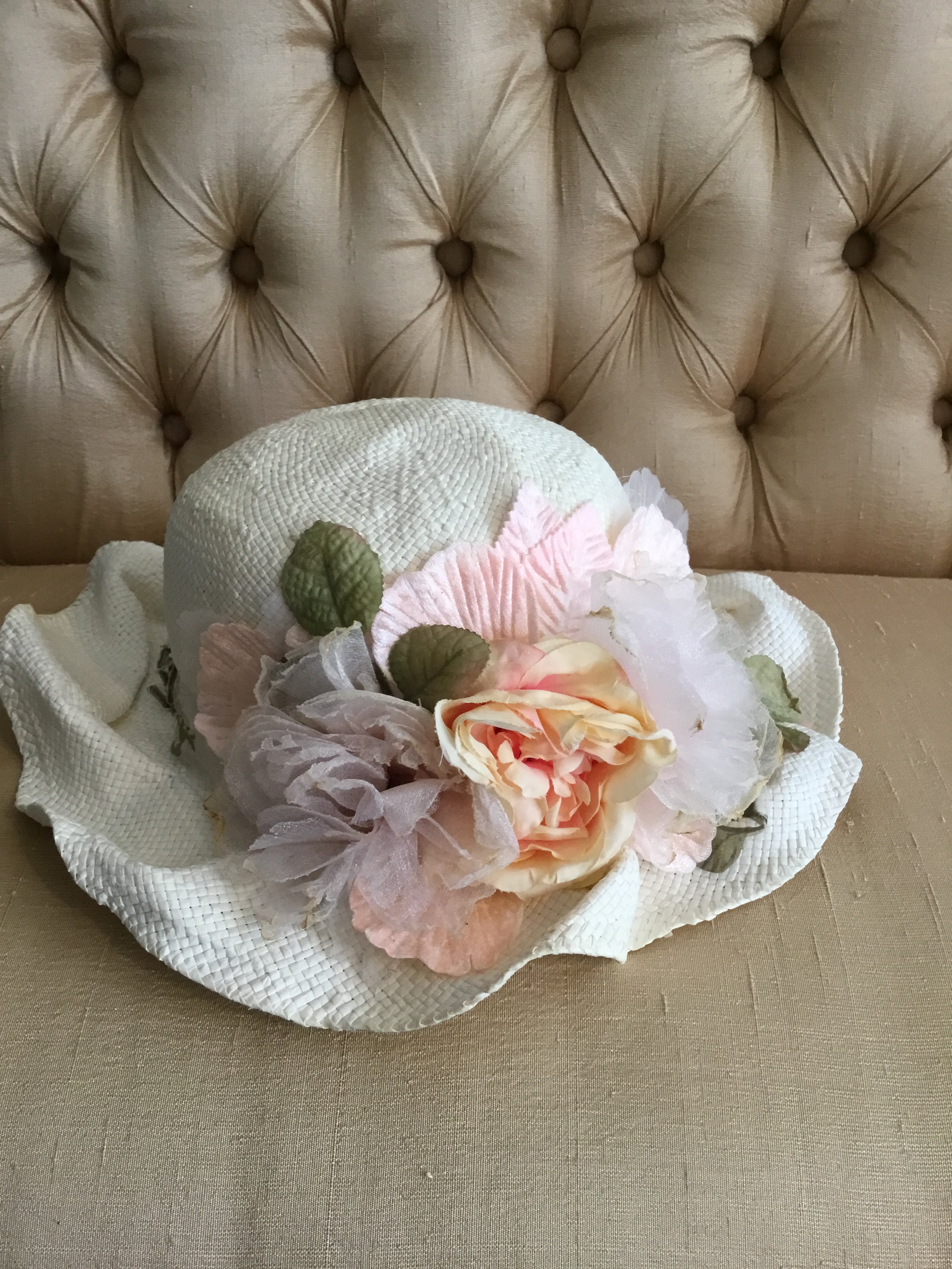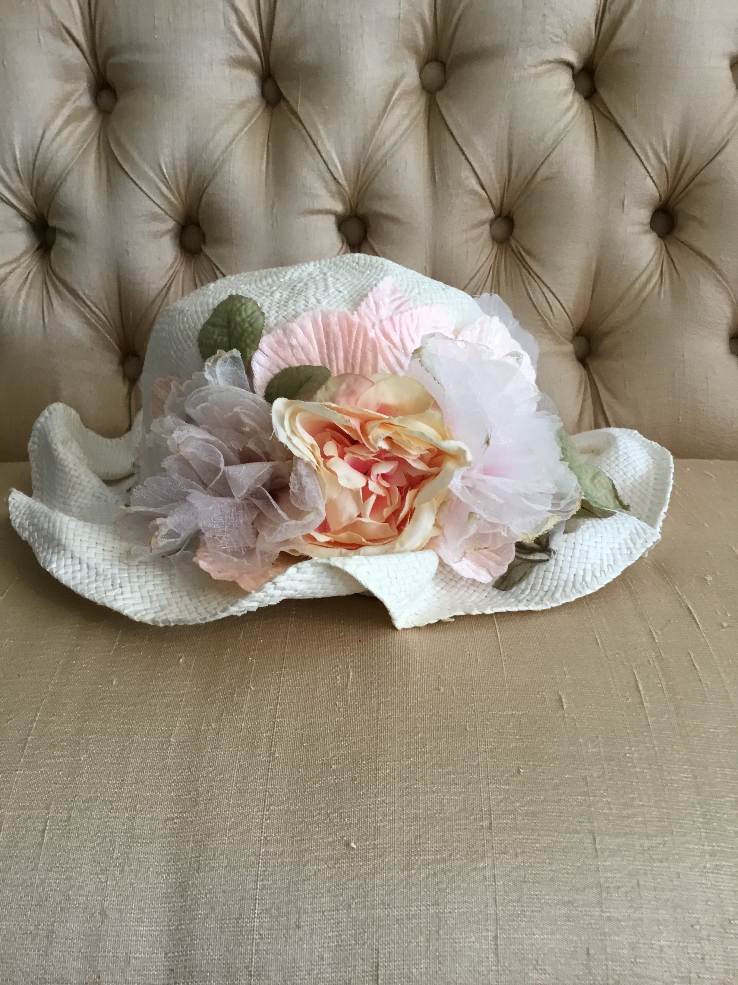 this Victorian inspired decorated hats are hand made there for they are not going to be exactly as the sample but very similar floral decorations according to availability.