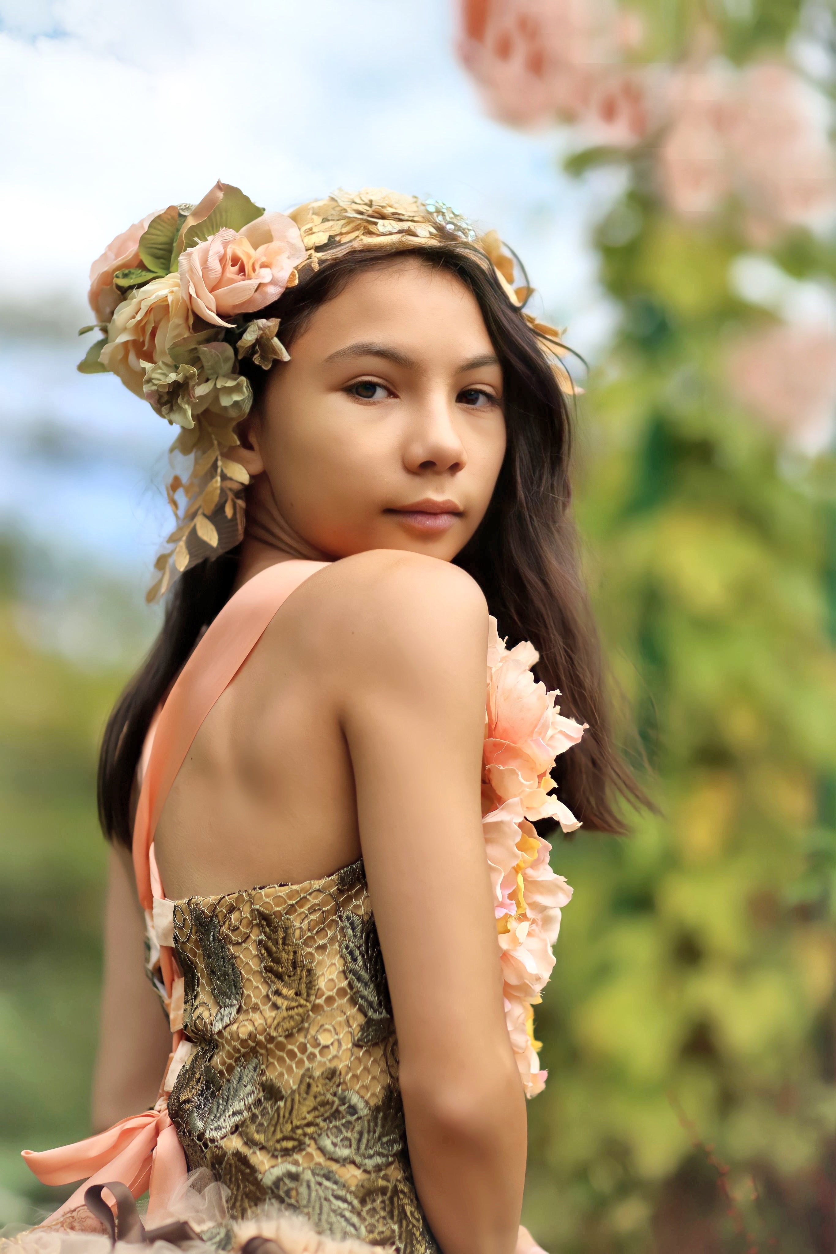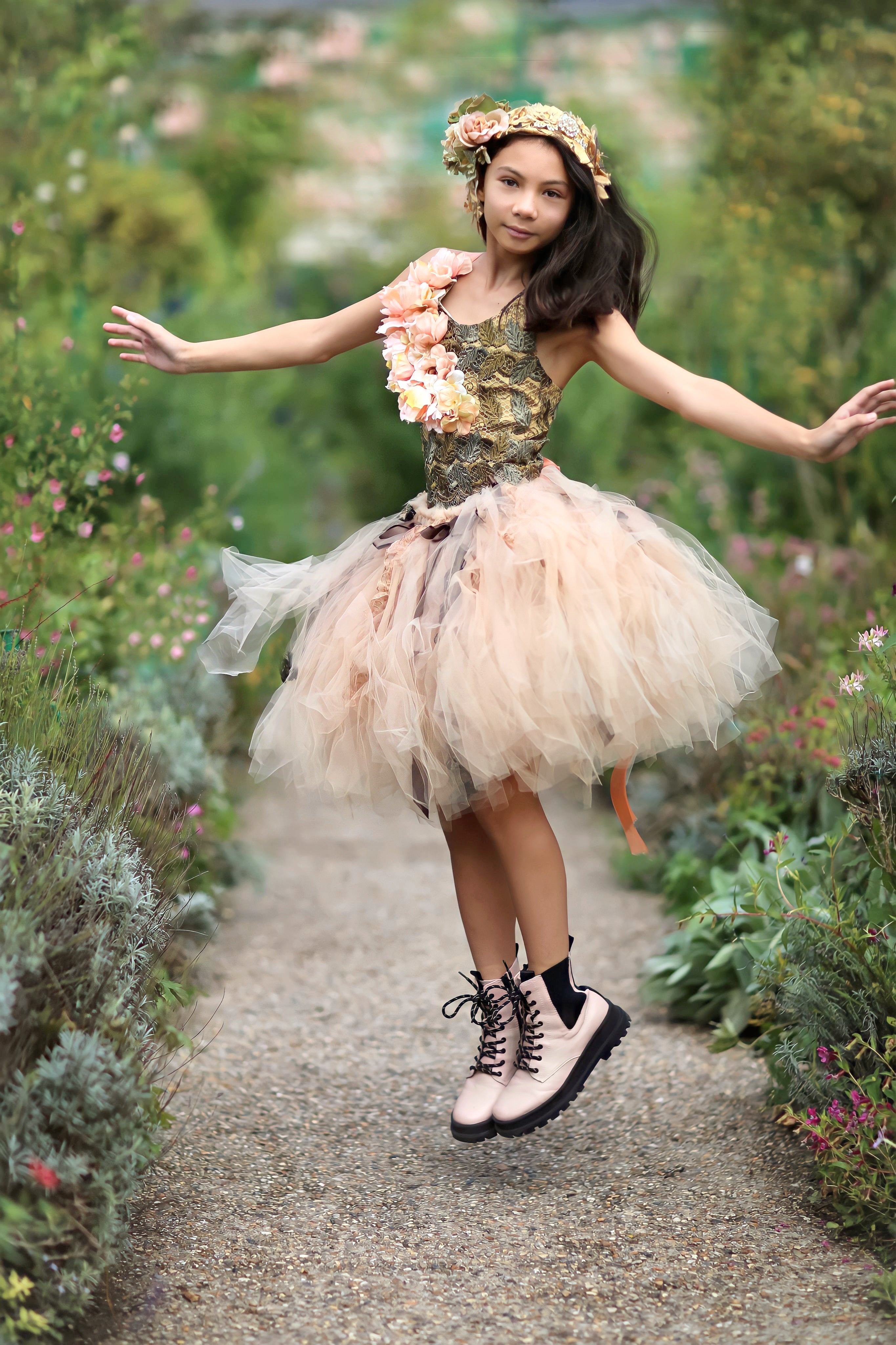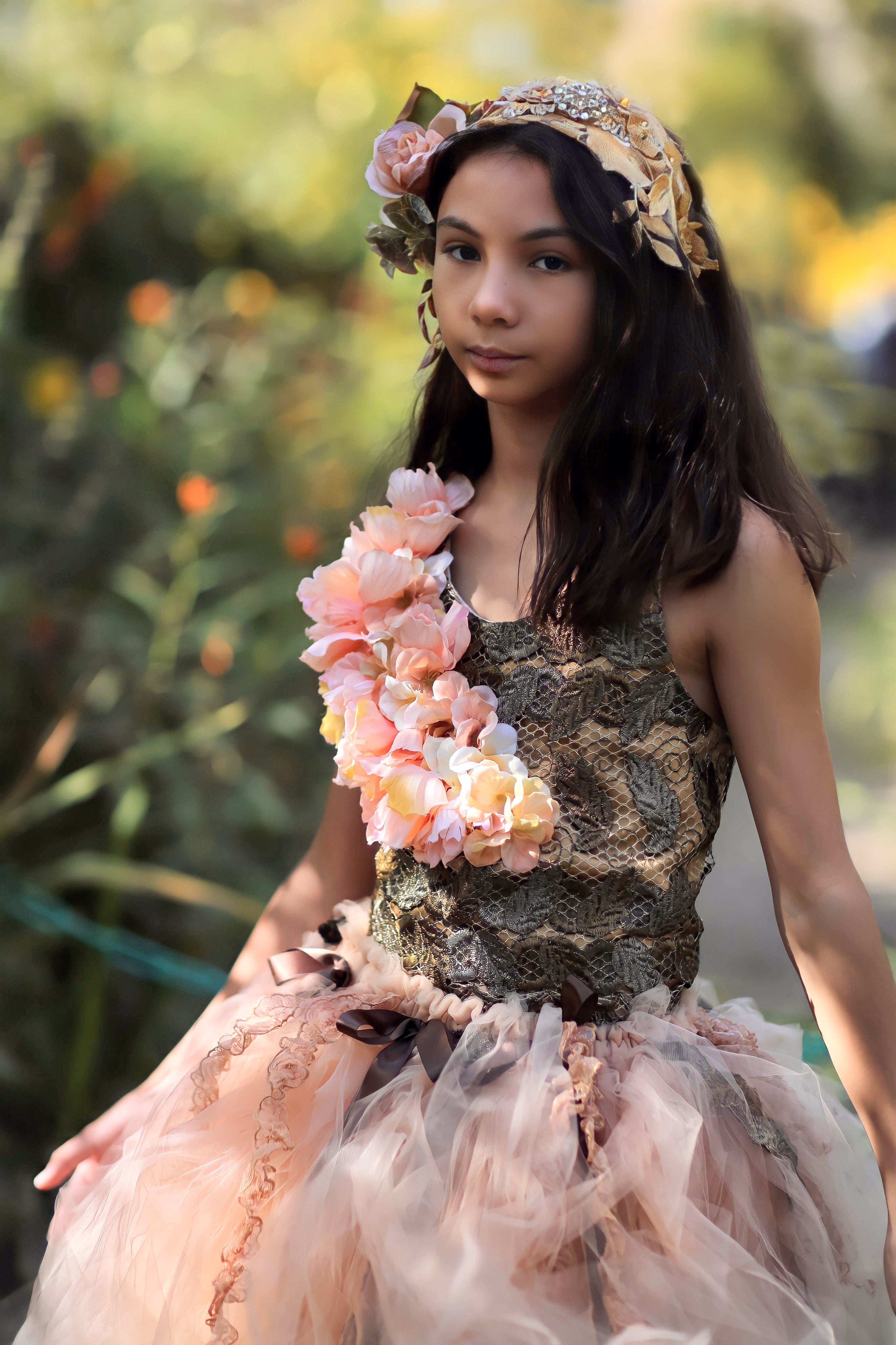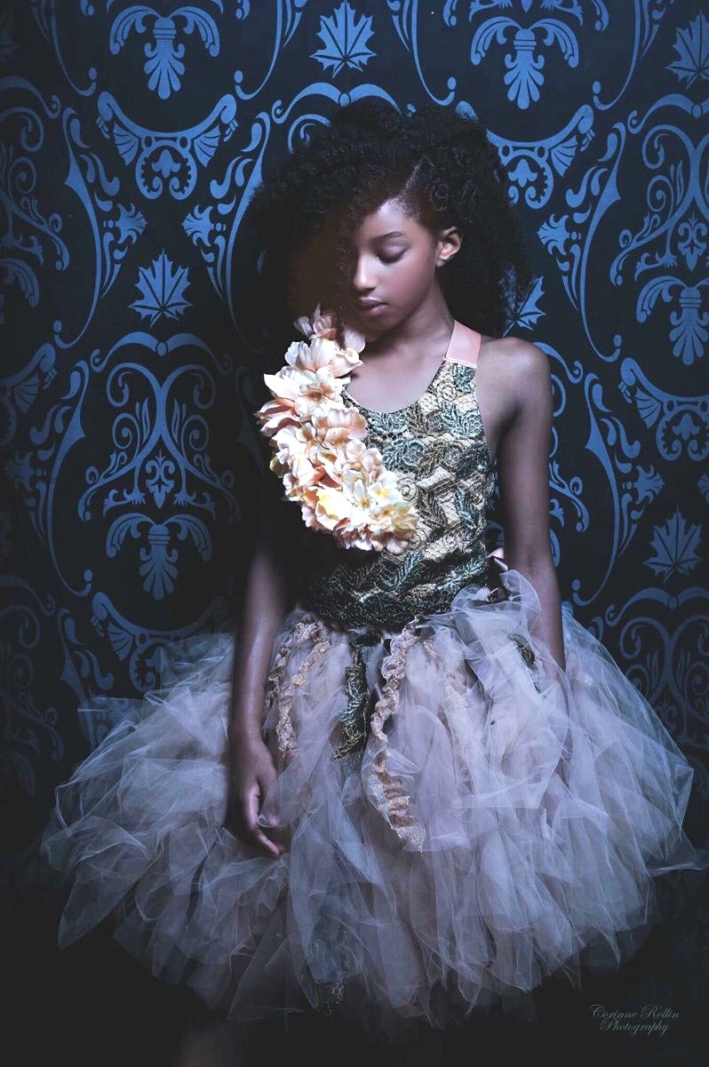 Girls Floral Metalic Lace Corset Couture Top Laura