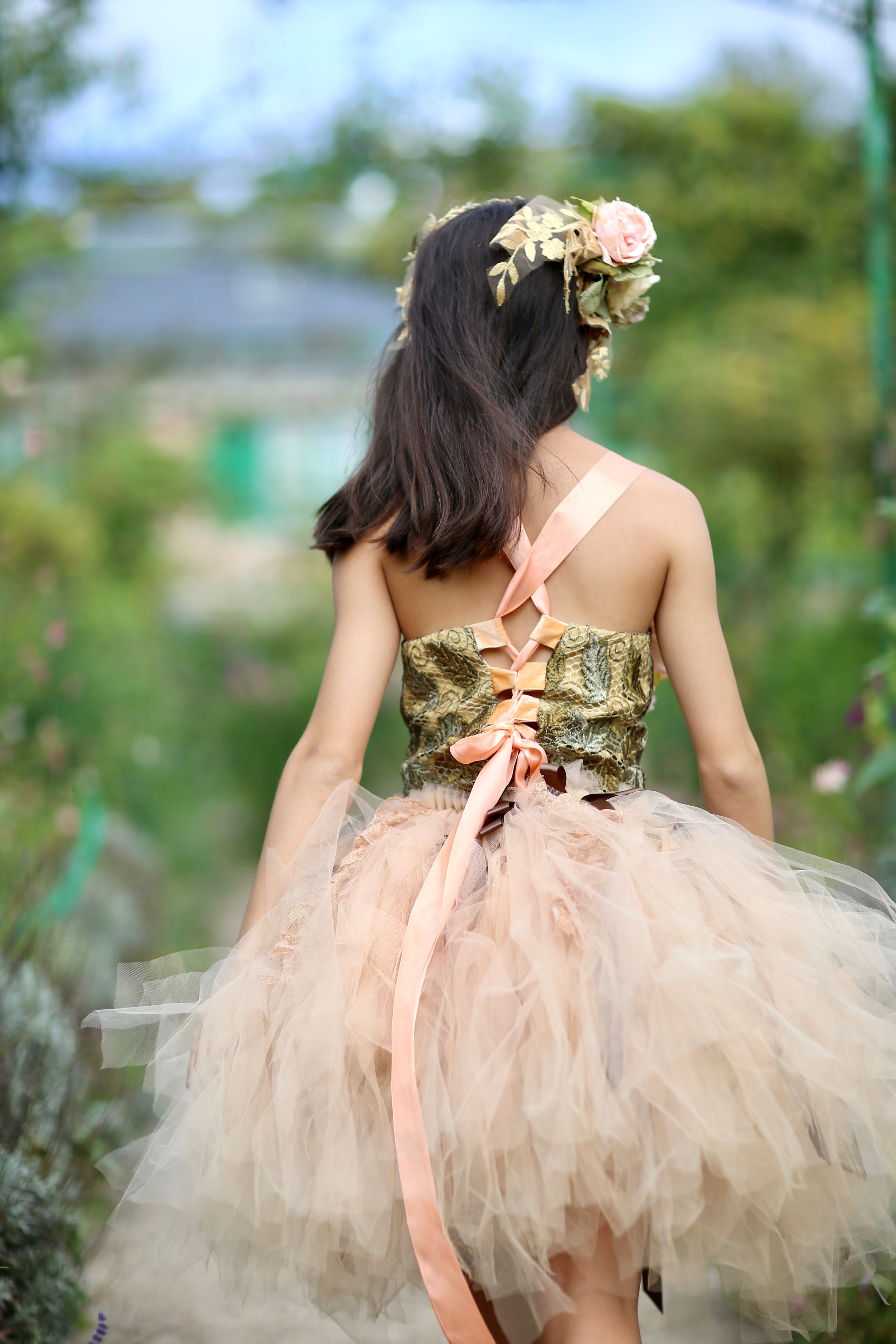 Handcrafted floral embellishments in blush and champagne tones