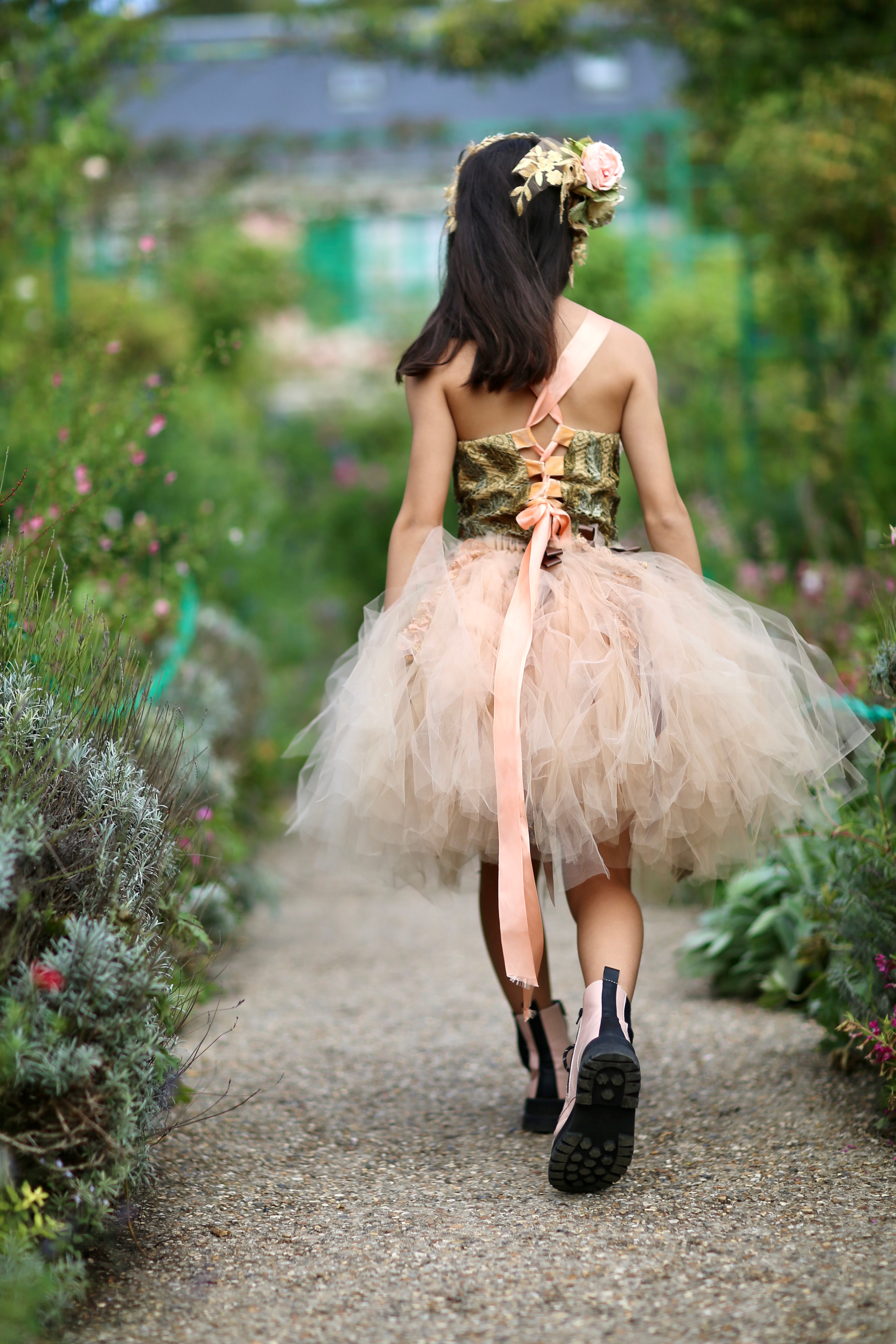 Back closure (zipper or tie, depending on variation)