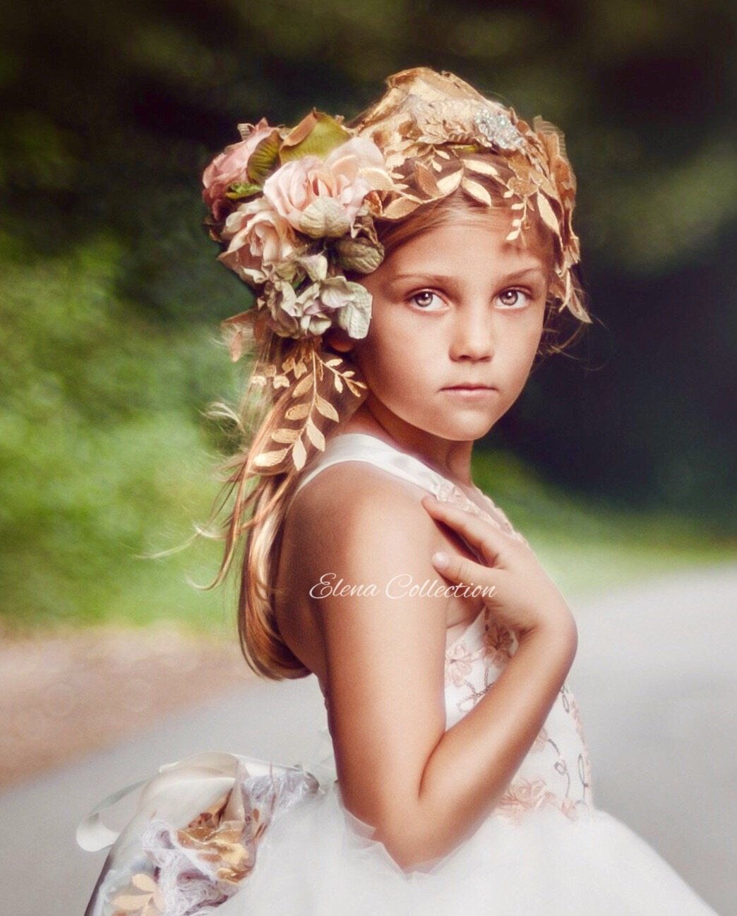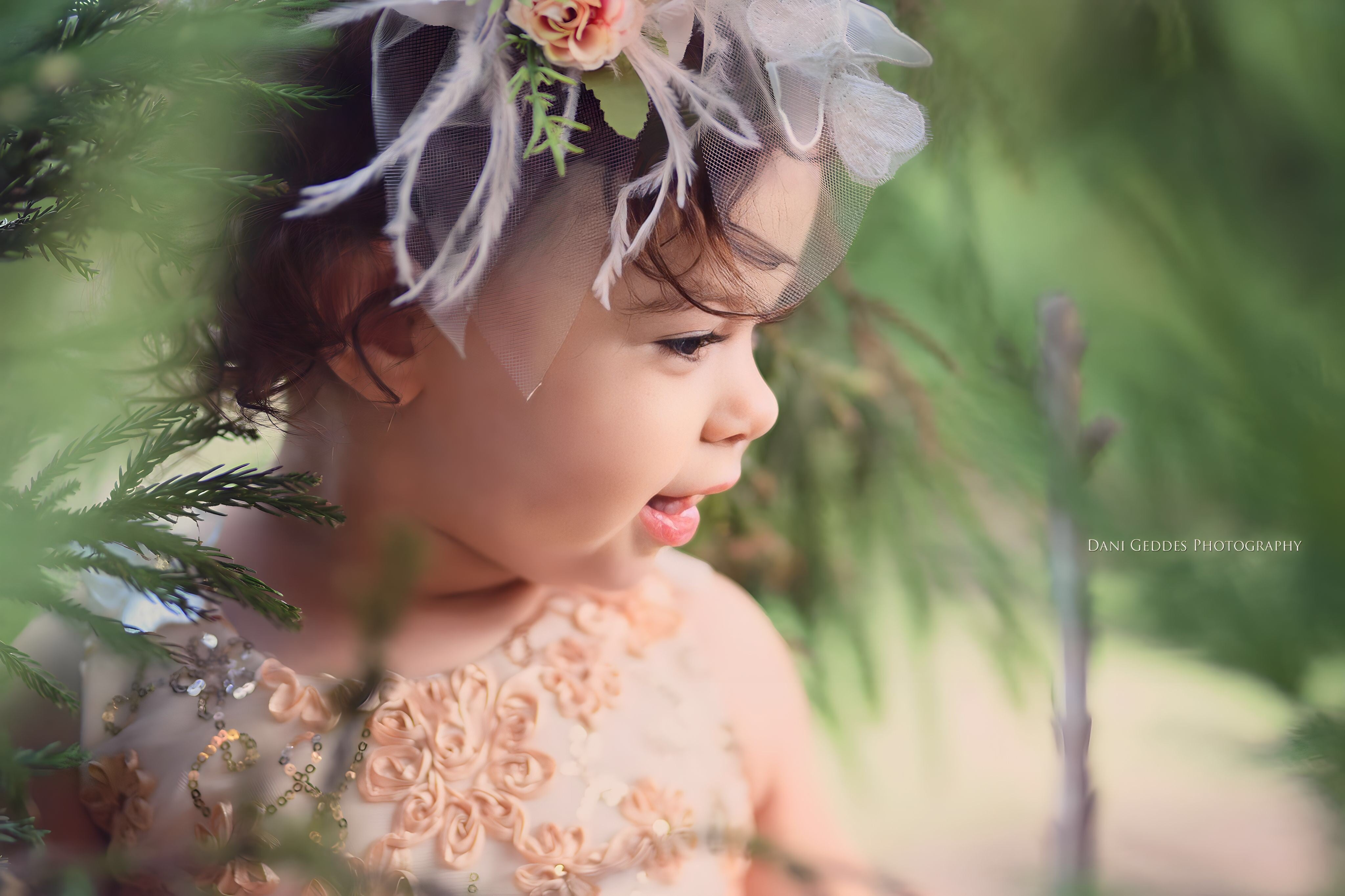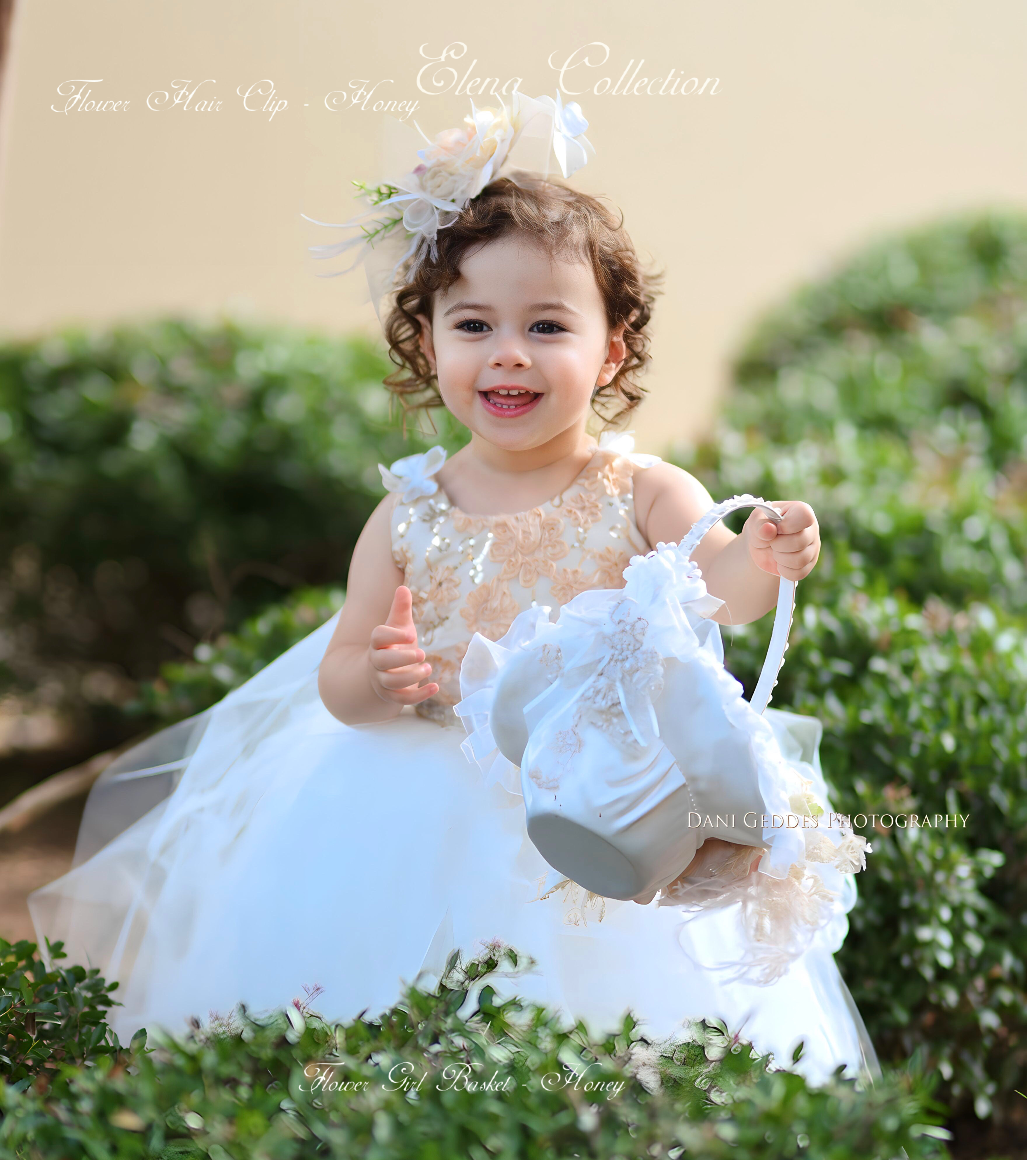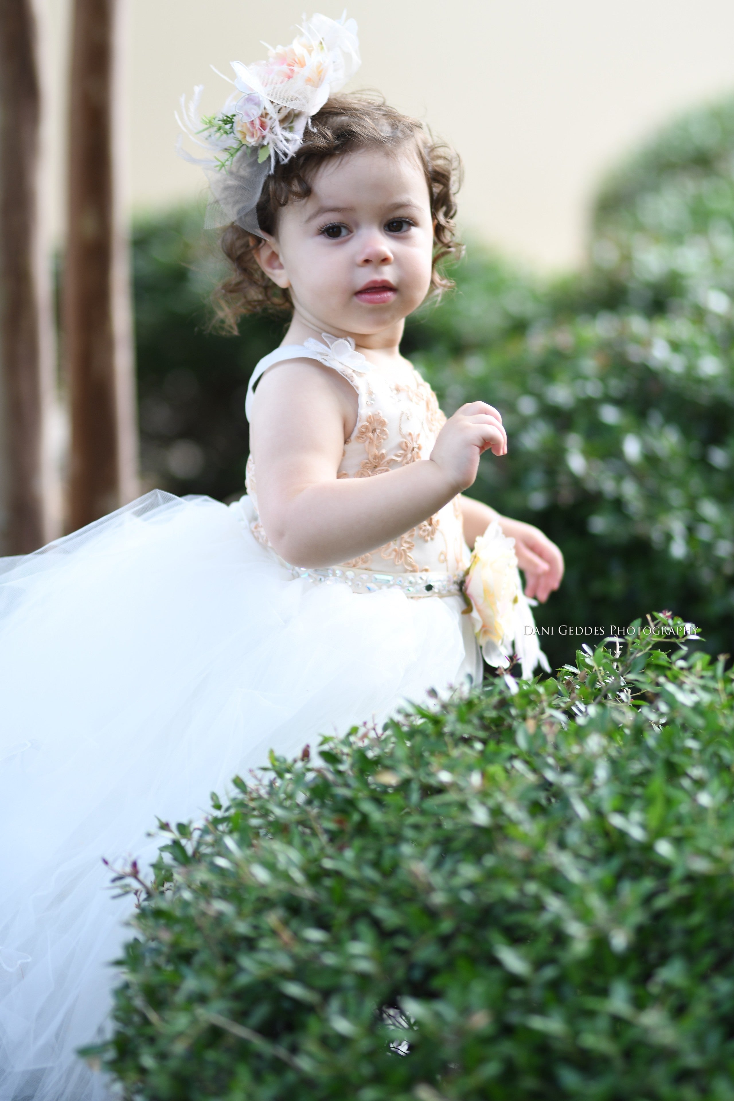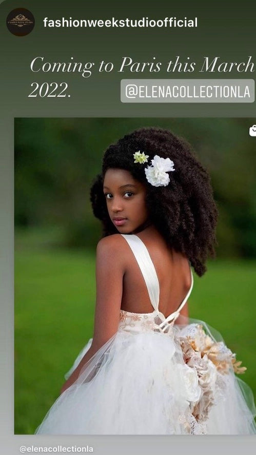 A beautiful and unique Flower Girl open back tulle dress with gorgeous one of a kind accessories to complement your weddings theme (sell separately)