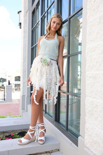 The halter design adds an elegant touch, while the beautiful pastel green color pairs perfectly with any outfit. Look and feel your best with the Kiskissay pearls top!