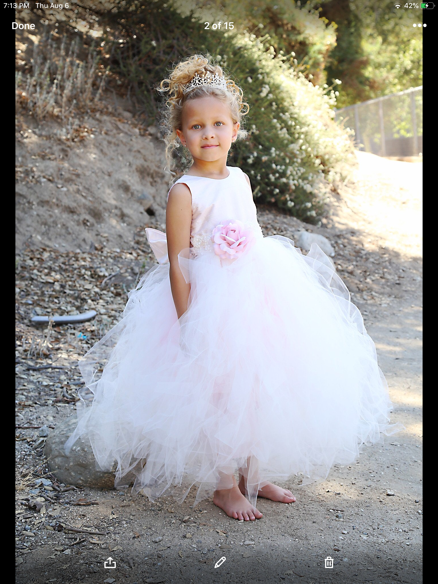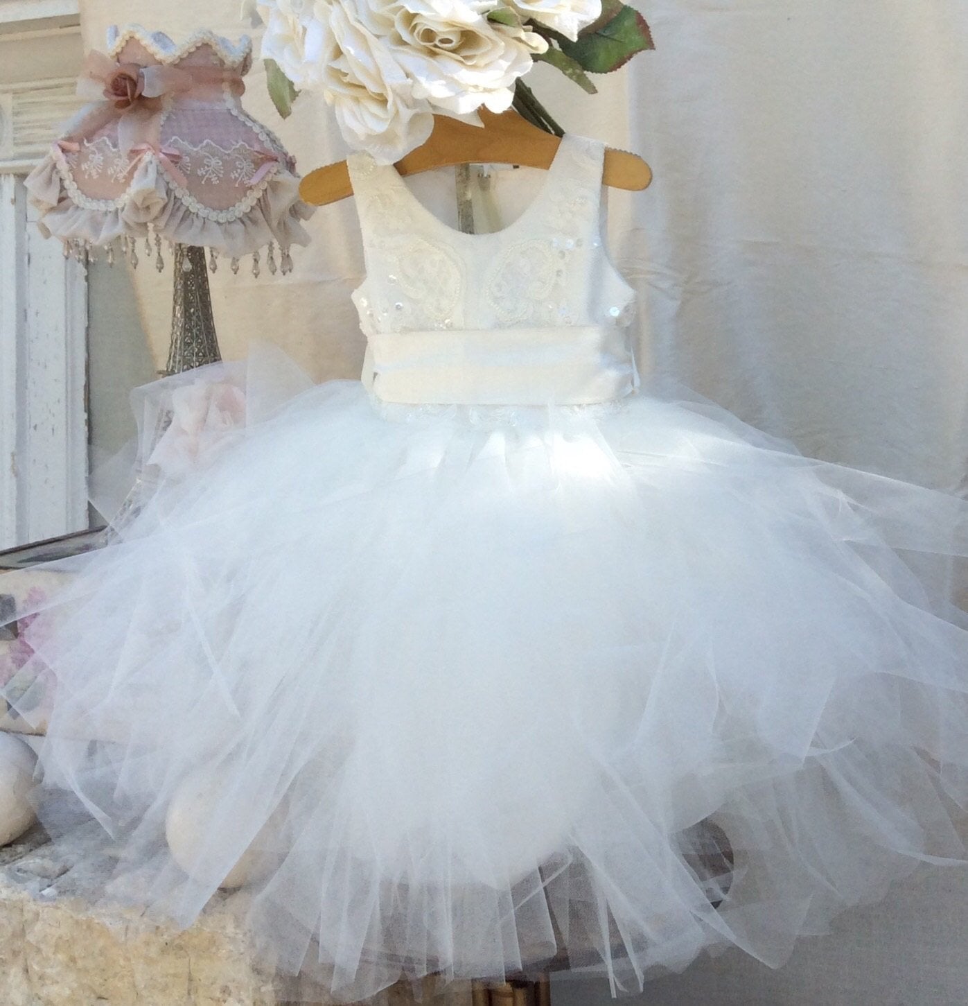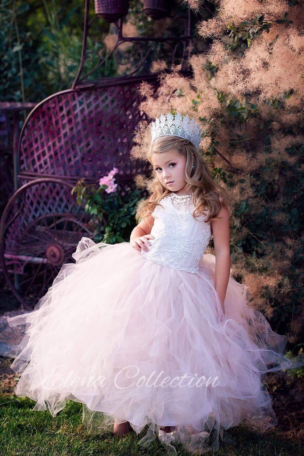 Rachelle,is a beautiful couture tutu dress. The bodice is made of a beautiful hand-beaded lace featuring an open back, with adjustable straps and corset back to adjust to your comfort.This beautiful couture tutu dress fits various sizes great for a flower girl photo shoot an any special occasion.