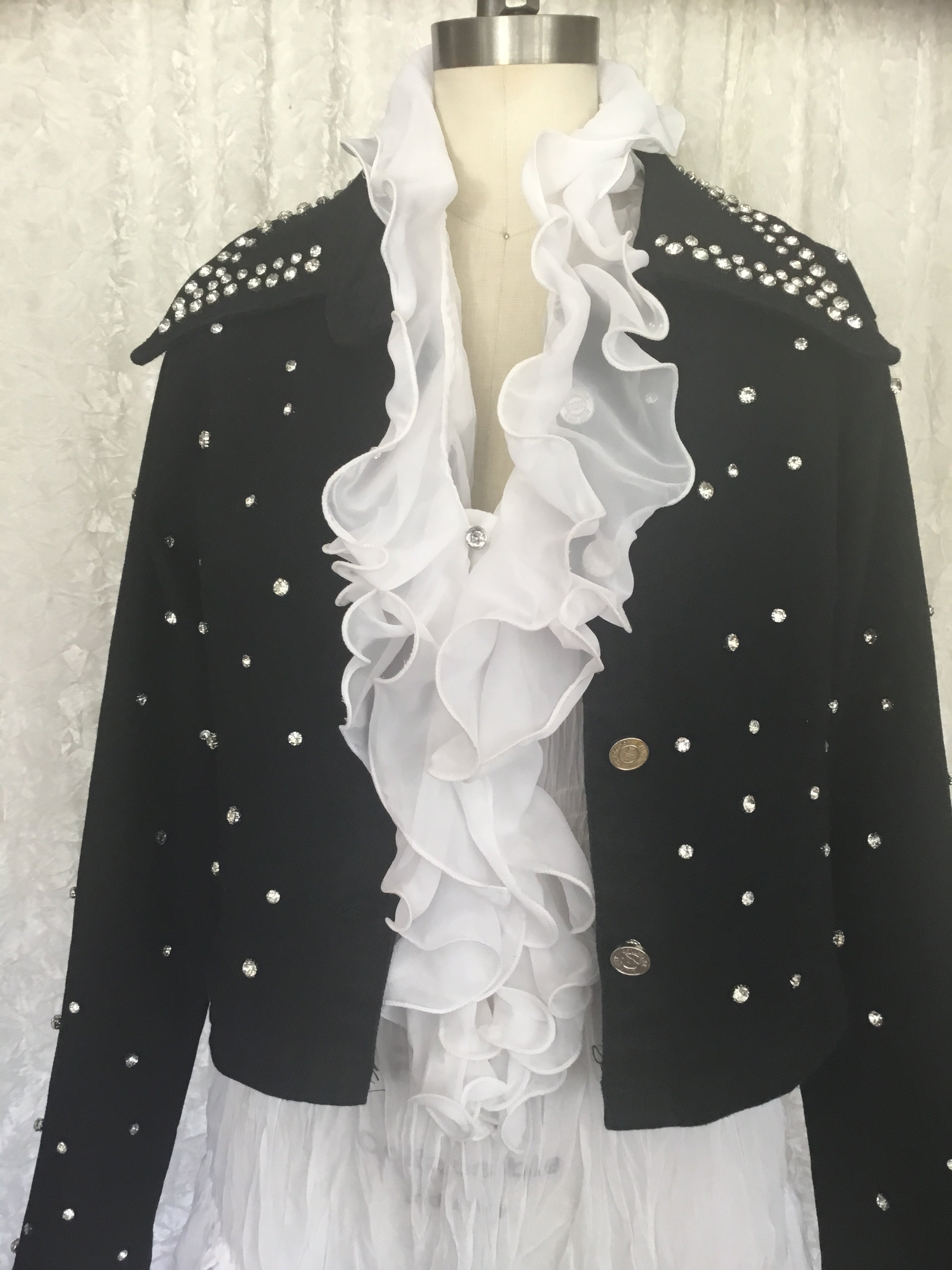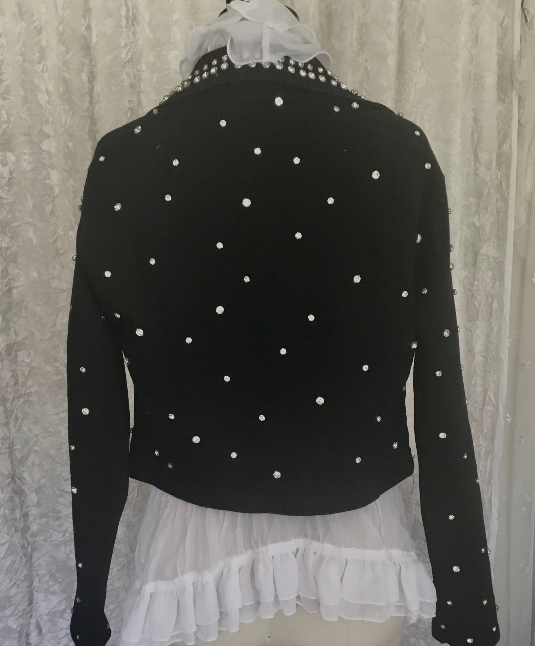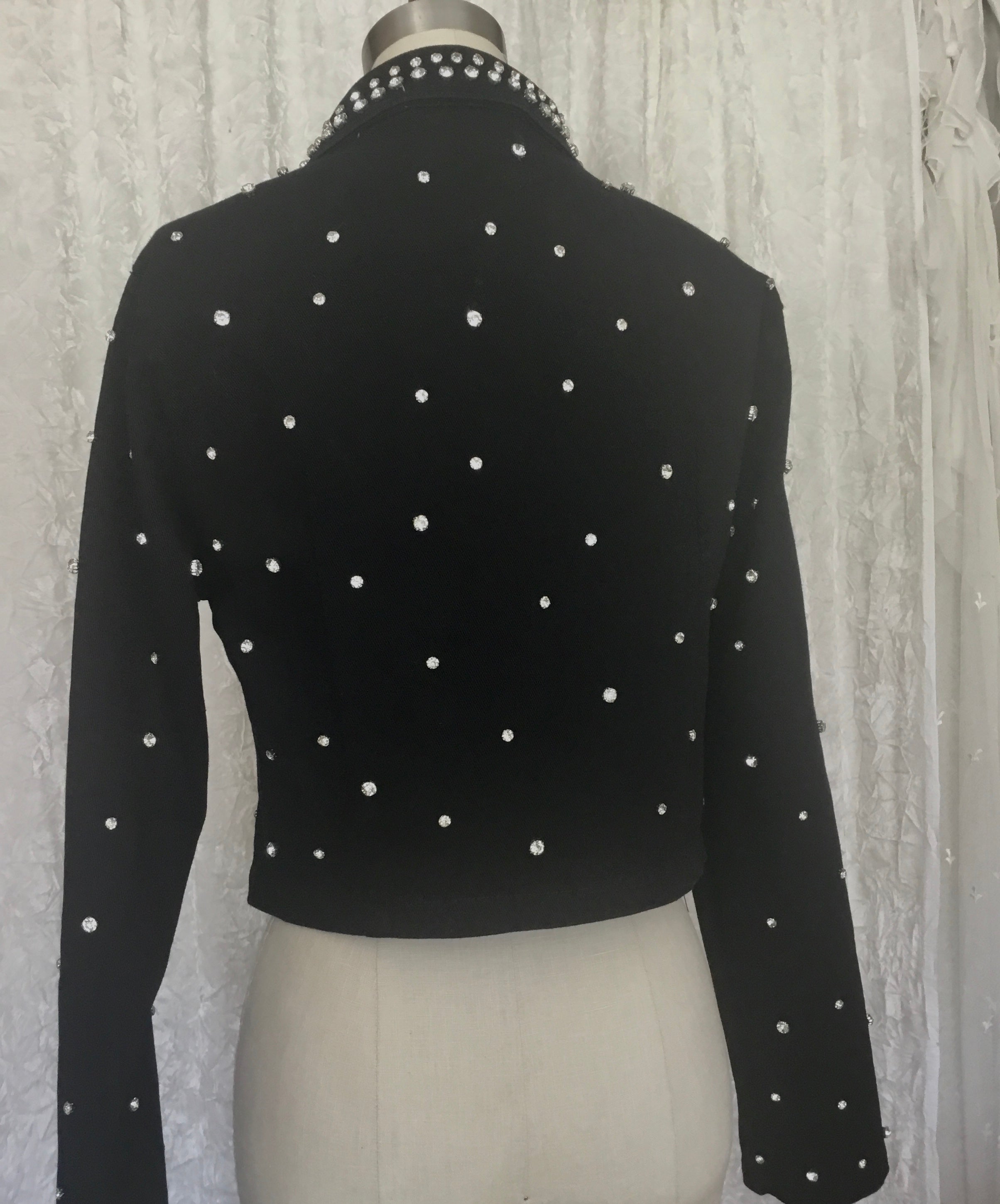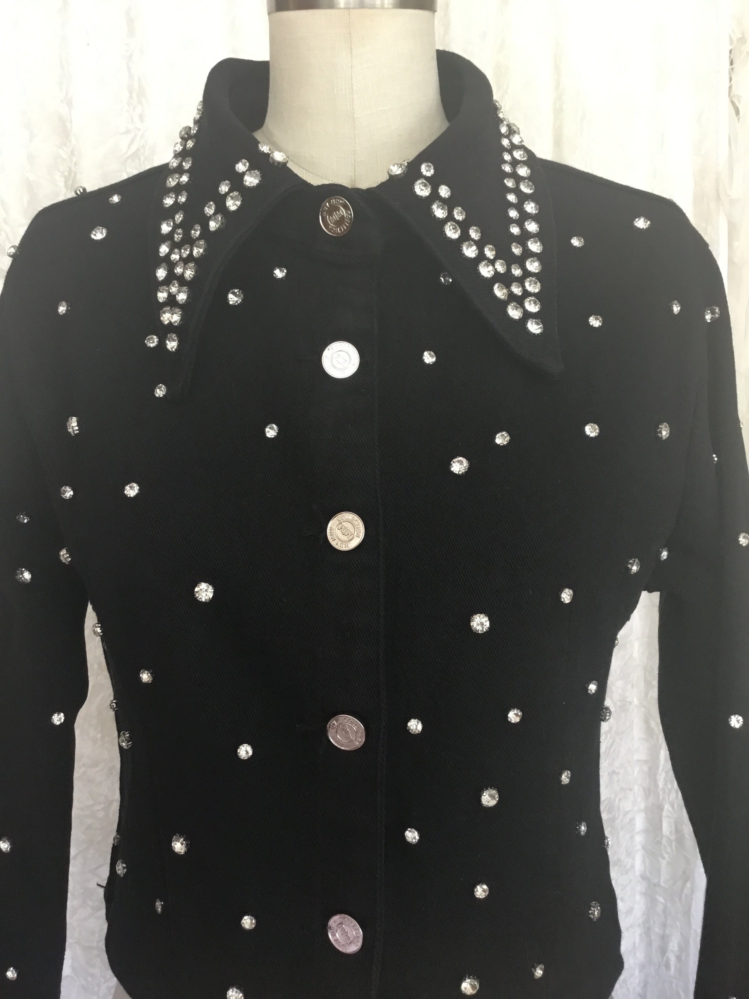 Rhinestone black denim jacket with studded rhinestones all over and beautiful heavier rhinestones details on collar.