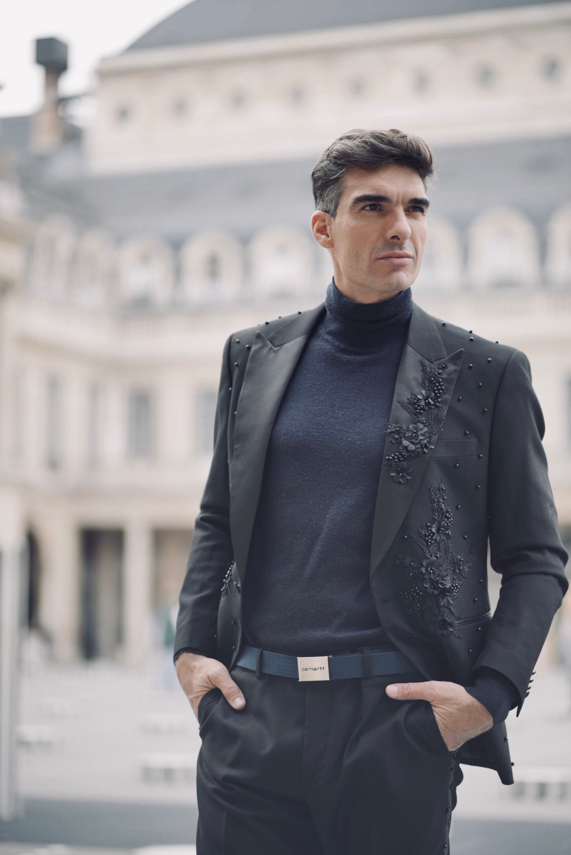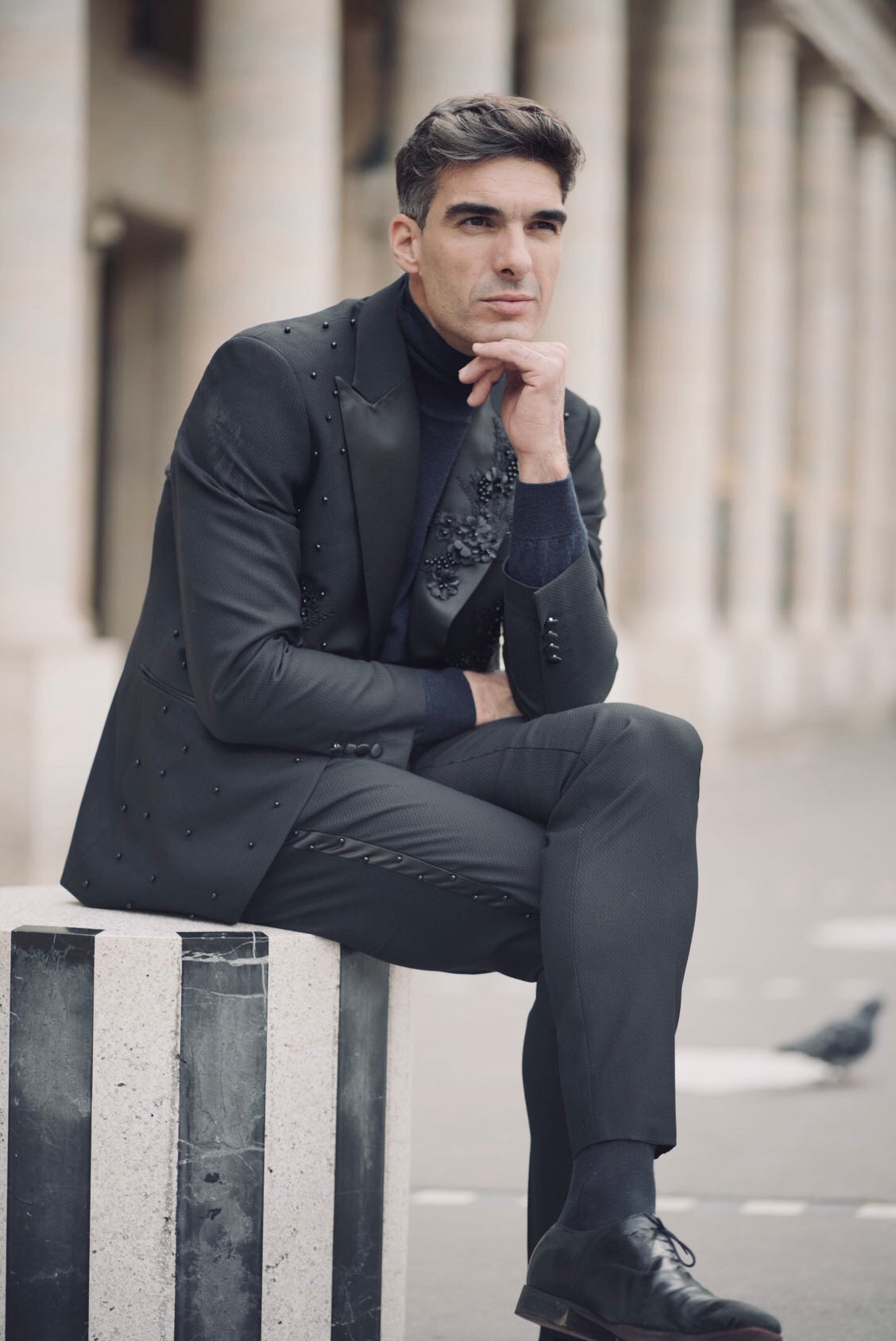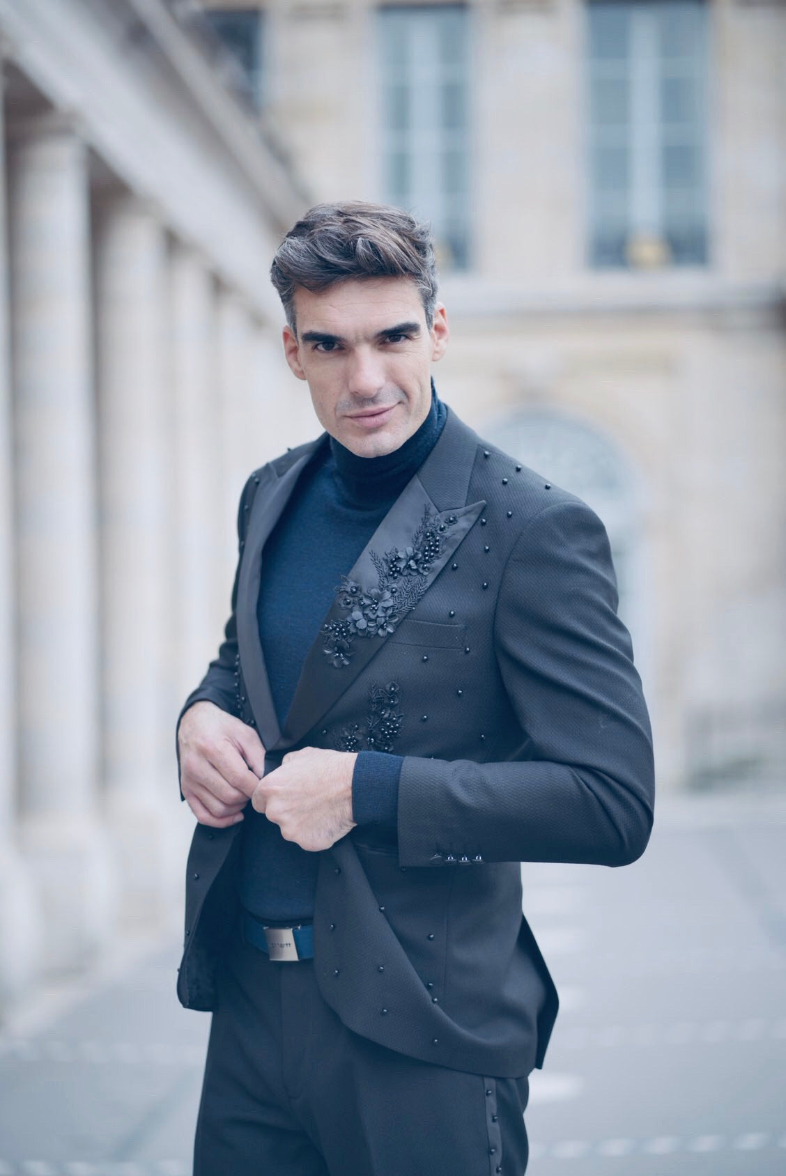 Paired with a 100% cotton knit Shirt or turtleneck shirt, this look blends classic tailoring with modern edge — perfect for red-carpet events, galas, weddings, or any occasion that calls for standout style.