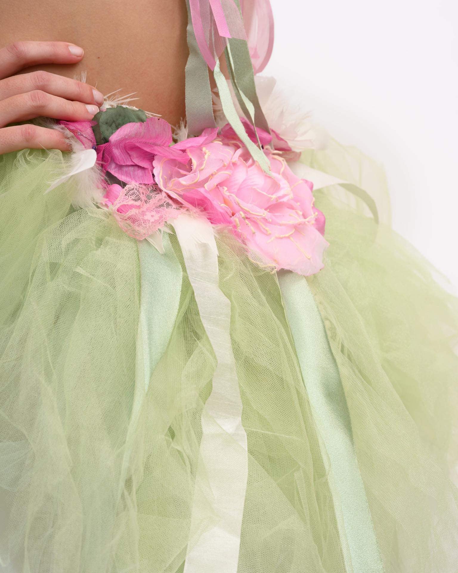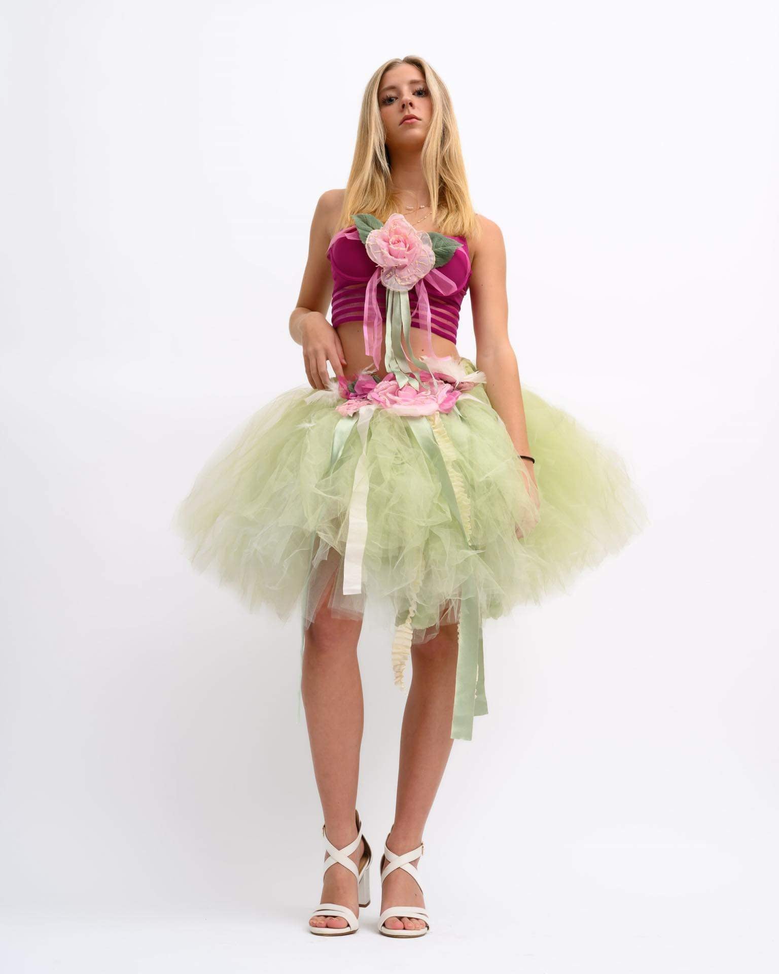 This hand dyed wedding skirt in shades of green radiates amazing free-spirited energy. This gorgeous tulle skirt and Bra Top in ivory will be great for the bride, who loves to feel unique.