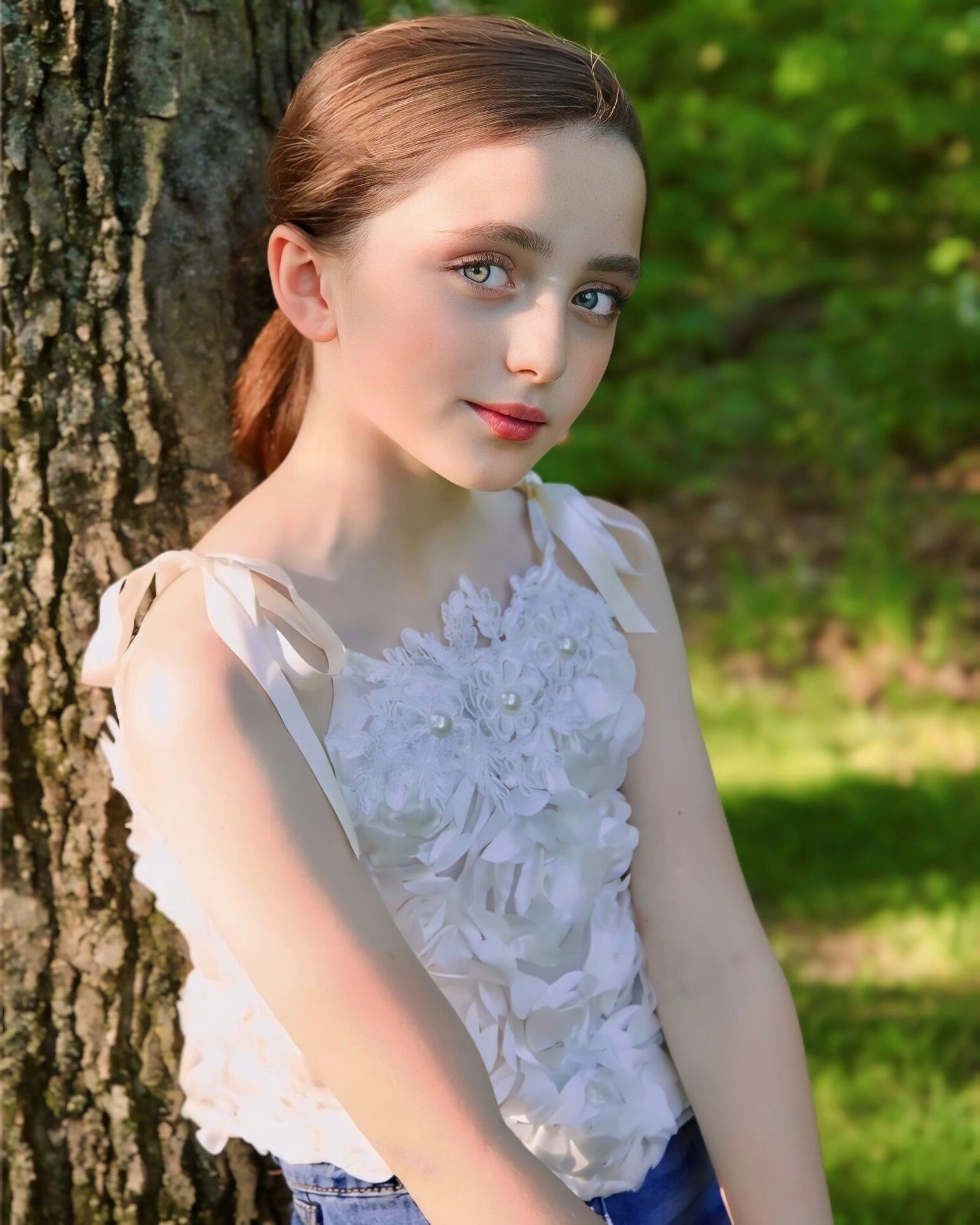 Corset Ivory Roses 3d Top for girls and preteens featuring adjustable sating ribbon straps and a corset back to adjust to your comfort. Perfect for any occasion