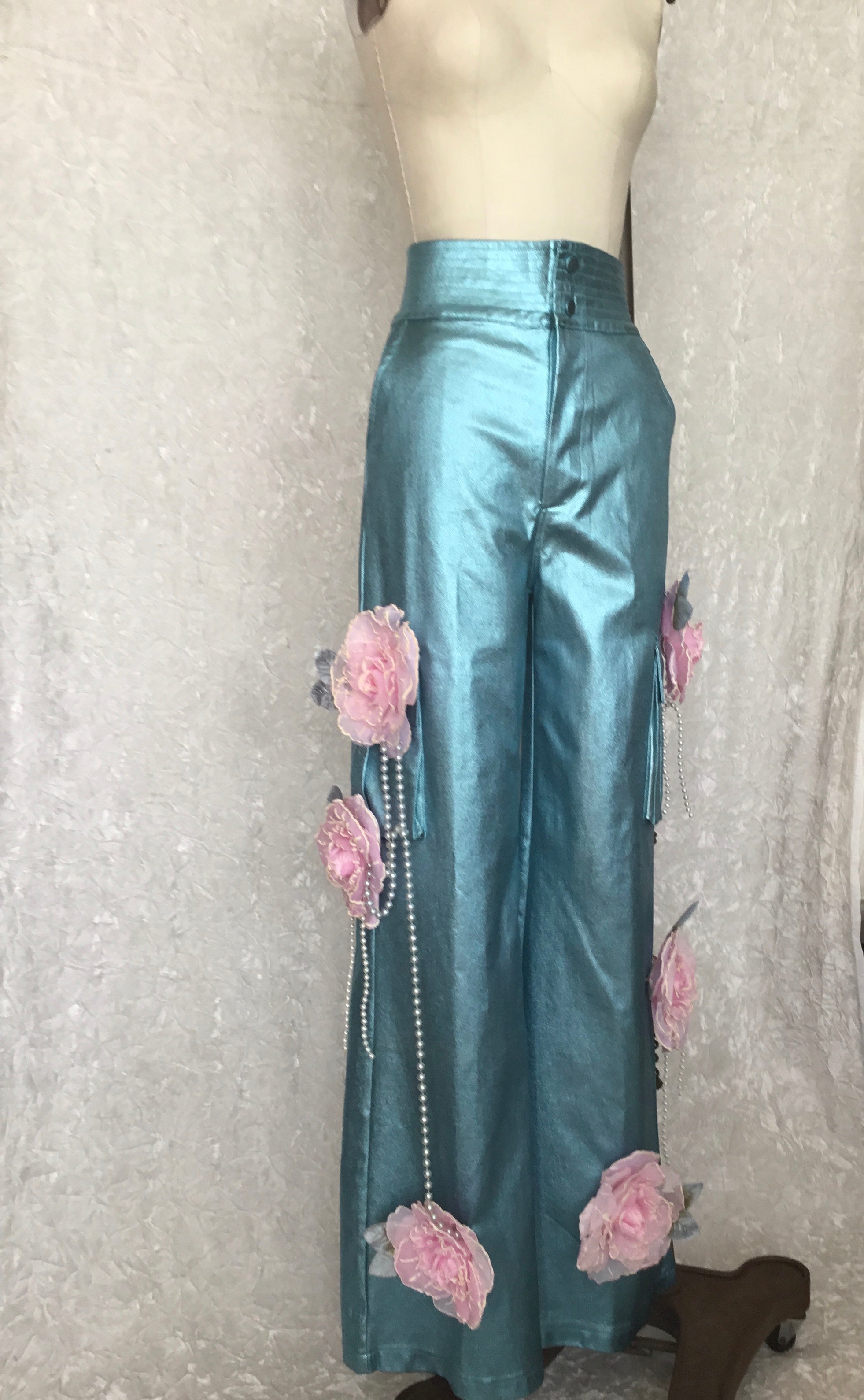 Pearliest PU Cargo Pants with Detachable Flower Brooches – Elena Collection