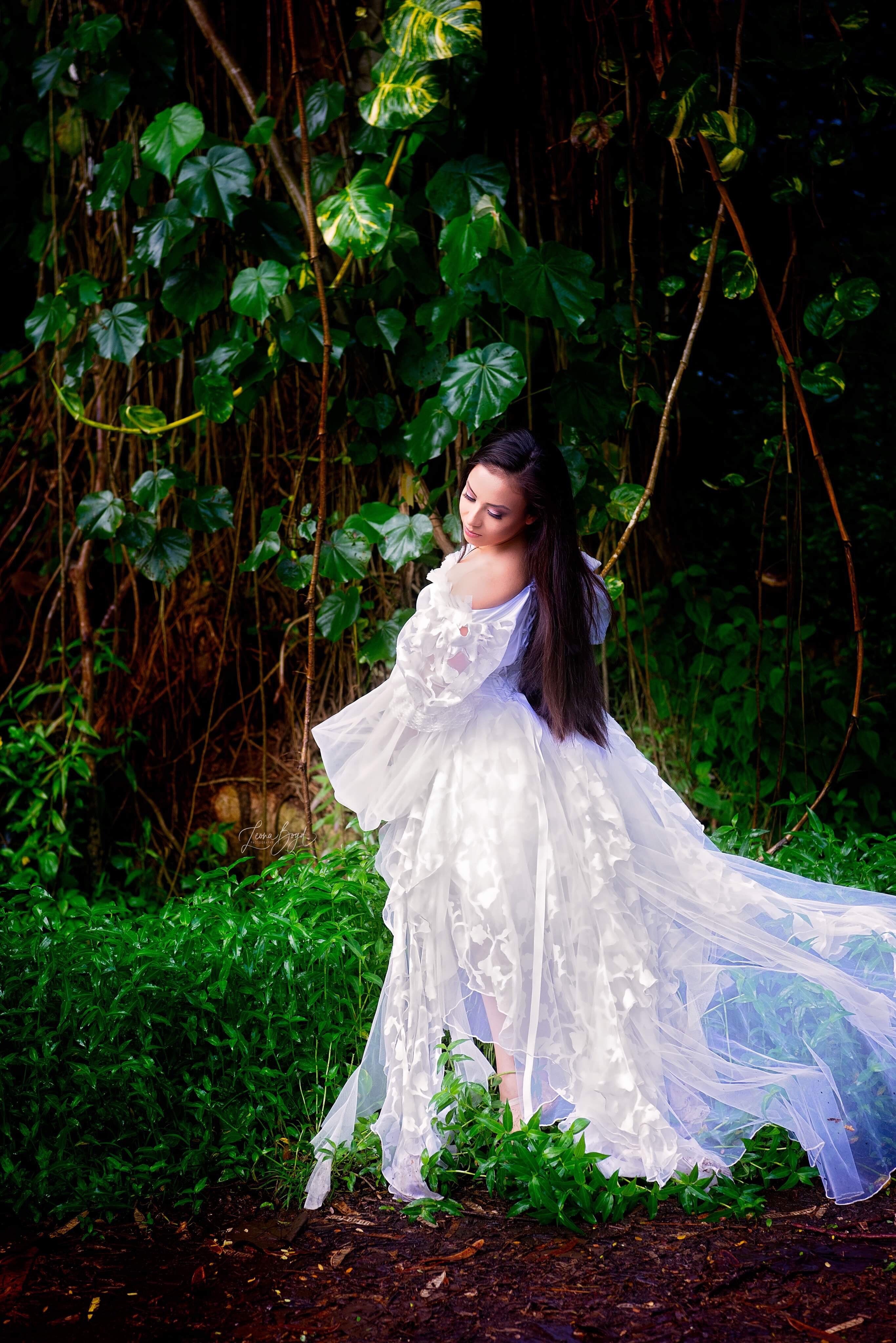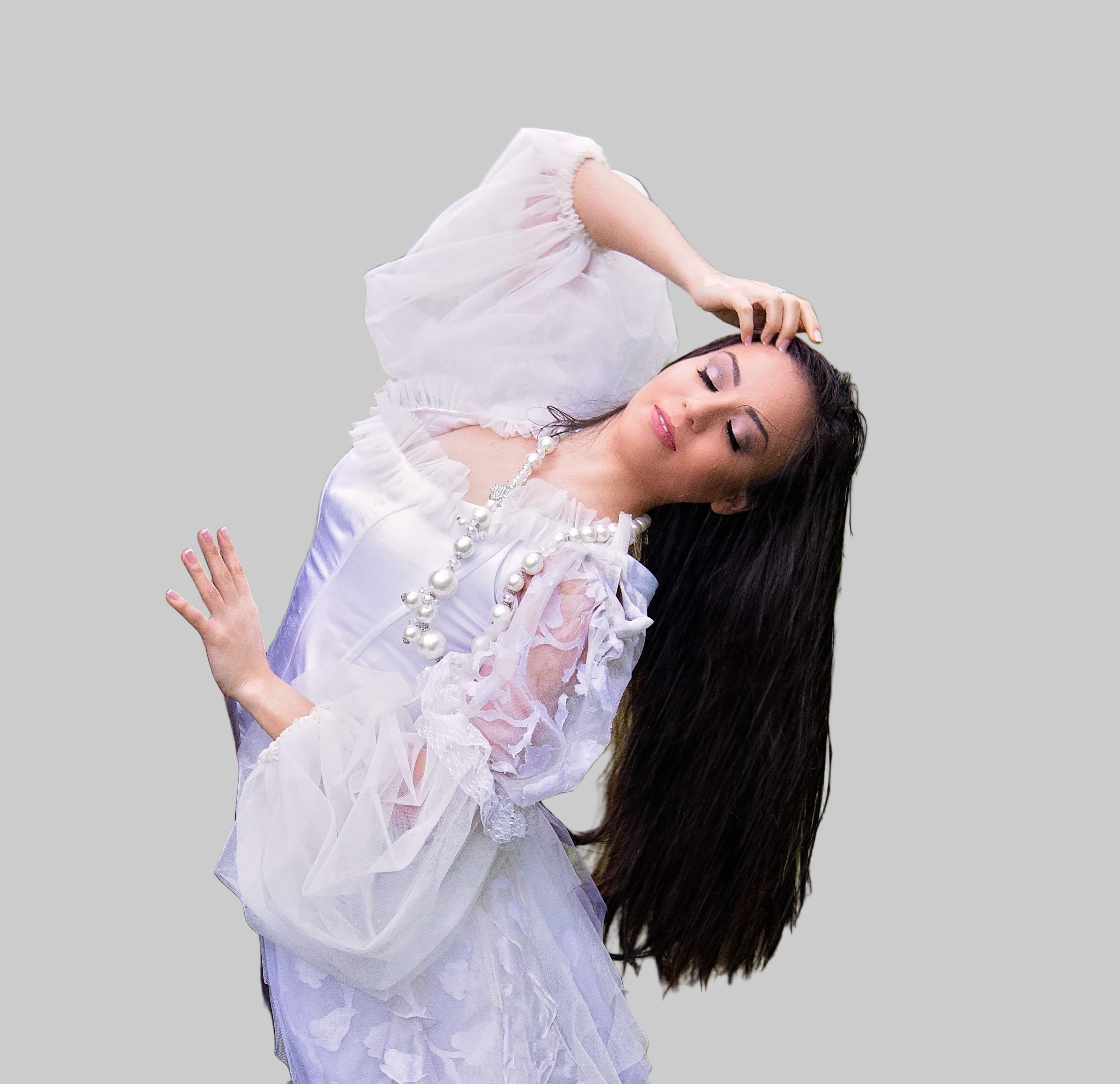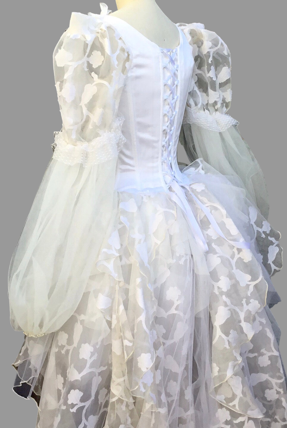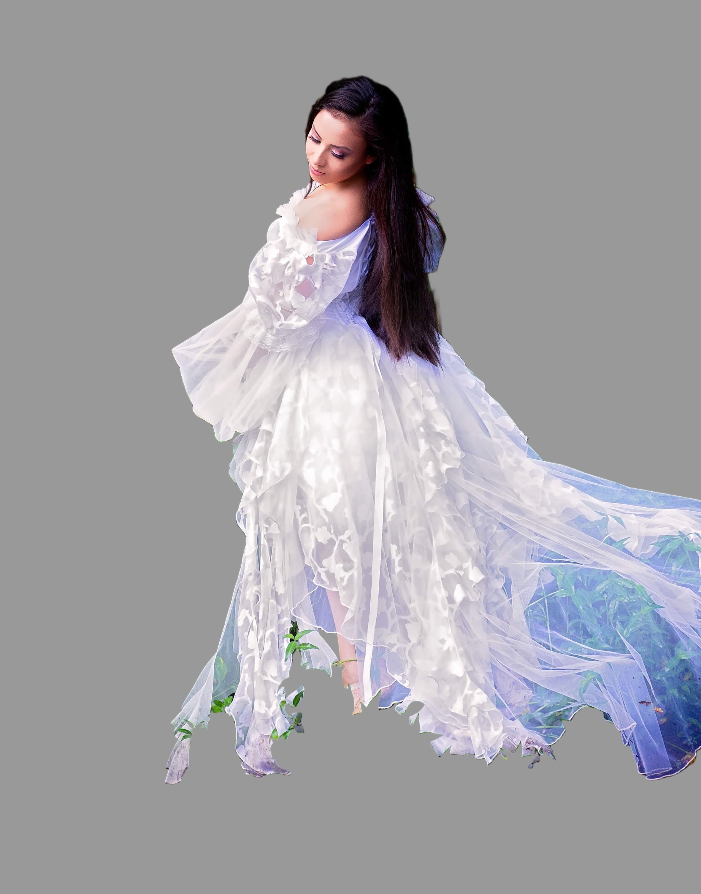Hand-finished floral embellishments and multilayered textures create a gown that feels both fairytale and high-fashion. Perfect for editorial brides, artistic ceremonies, garden weddings, enchanted-forest themes, or dancers seeking a gown that moves beautifully on camera.