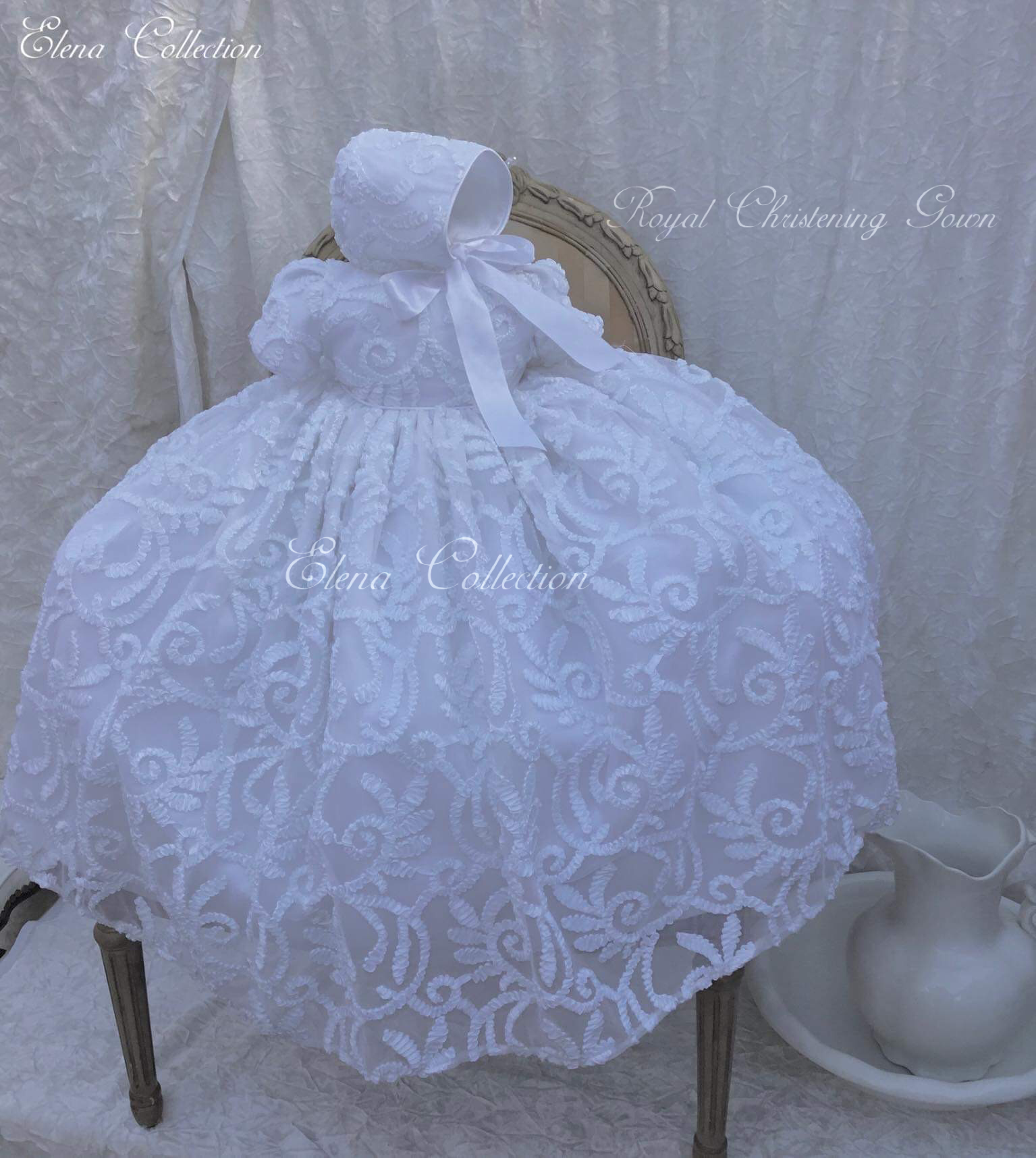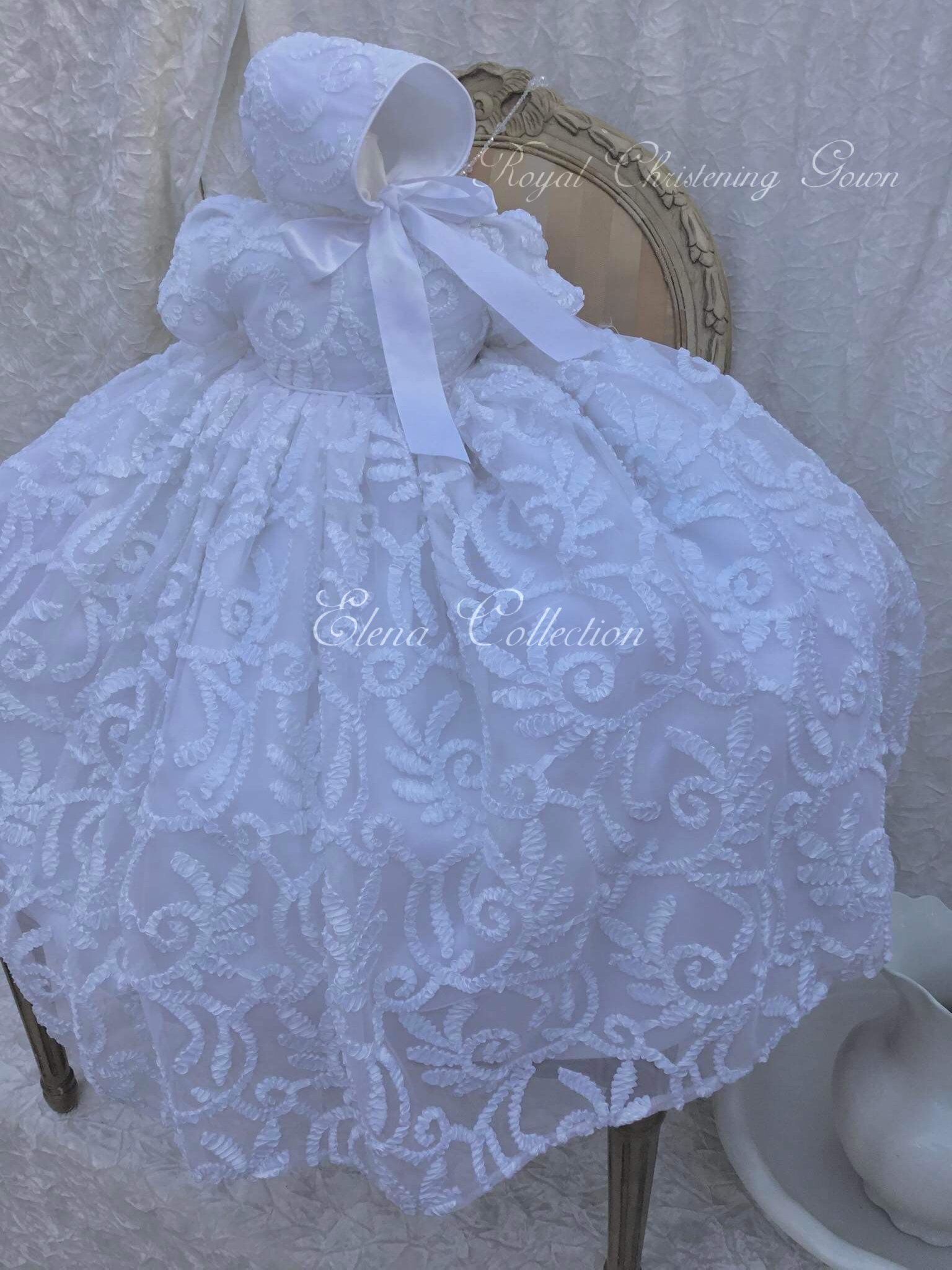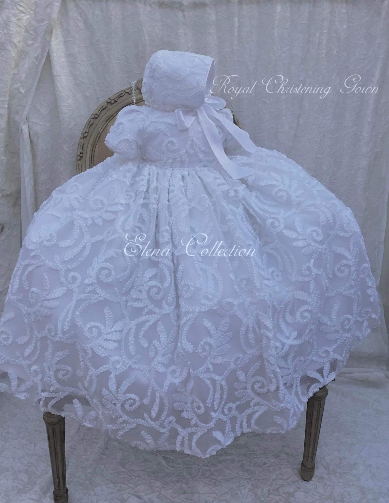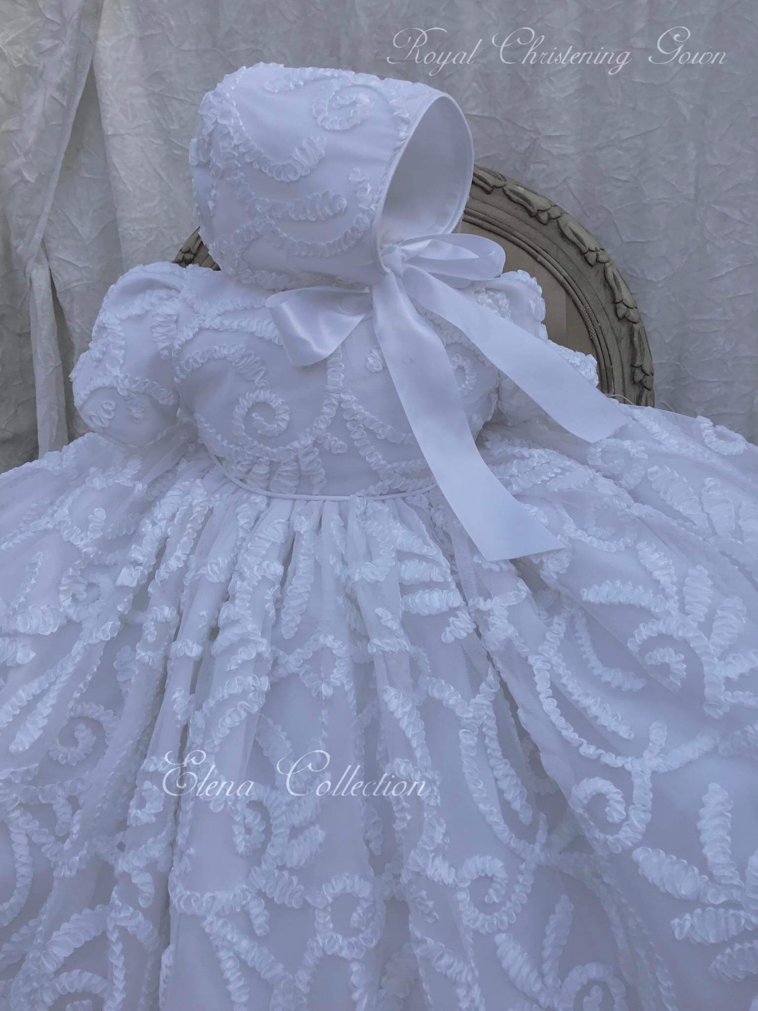 Heirloom Christening gown crafted with exquisite care for baptism ceremonies, blending timeless elegance with lasting quality. Made from luxurious fabrics, these gown feature intricate embroidery ribbon 3d , accompanied with a matching bonnet. Their superior craftsmanship and classic design make them treasured family keepsakes symbolizing faith and tradition. Fabrics include: - Silk - Cotton - Lace